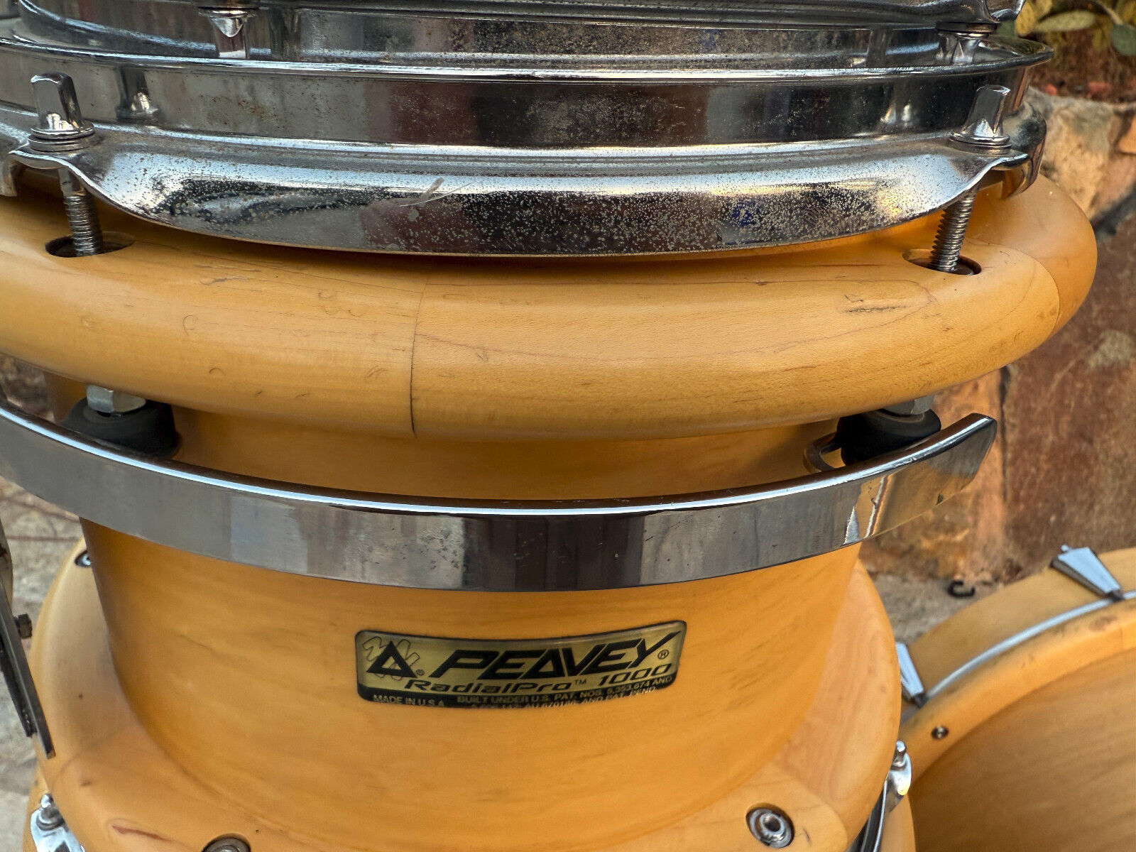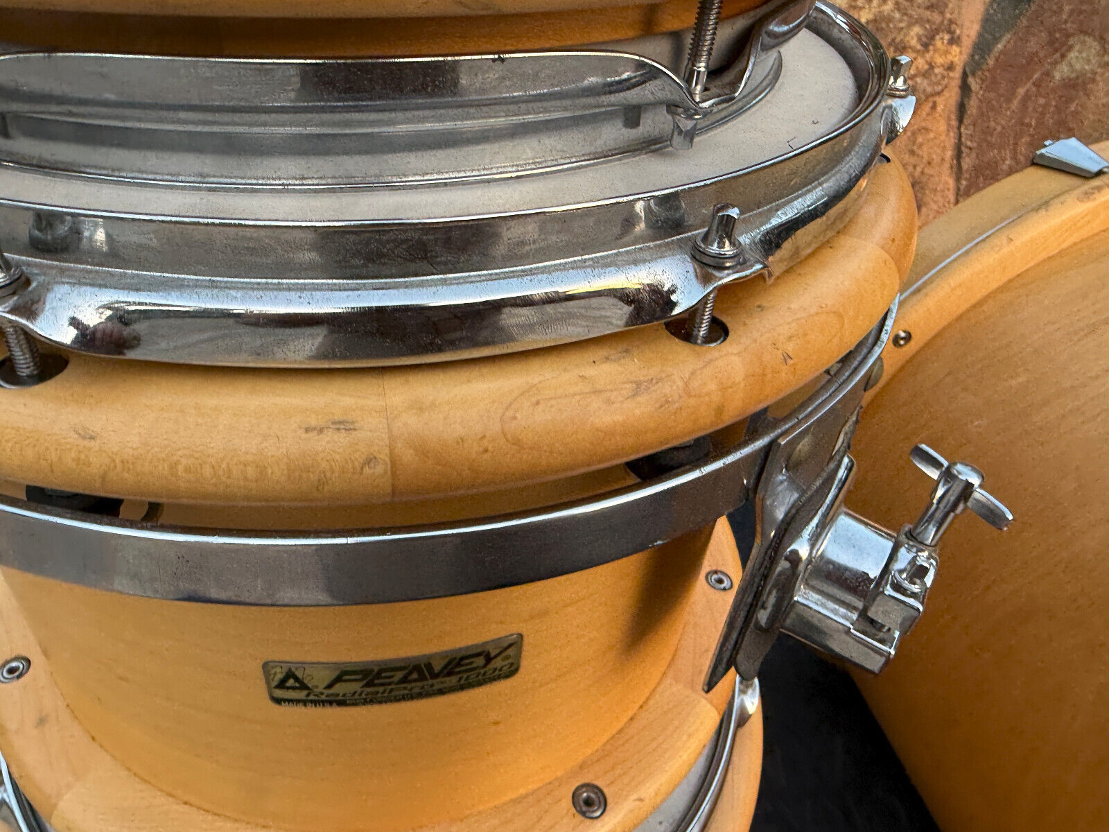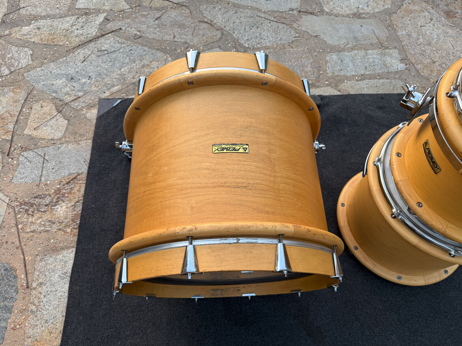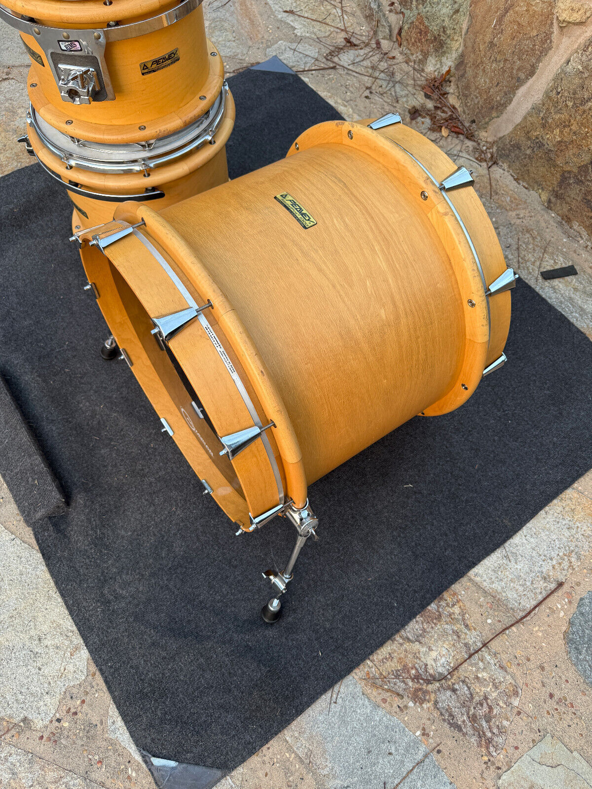 Condition wise this kit is used and has expected wear for a 30+ year old kit. . It has several marks and rub spots. I would say the most is on the bass drum. Has several along the outer bass rings. Players kit . All interior shells are inspected and in great shape. A couple hairline spots on the rings on the bass drum ( see pictures) but doesnt look like it effects anything and the bass drum spurs bolts were replaced so there is a little bit of wiggle room on those. I assume this would be normal for them to not be 100% tight and to have a little play but those screws could be changed. . But this is a great kit .