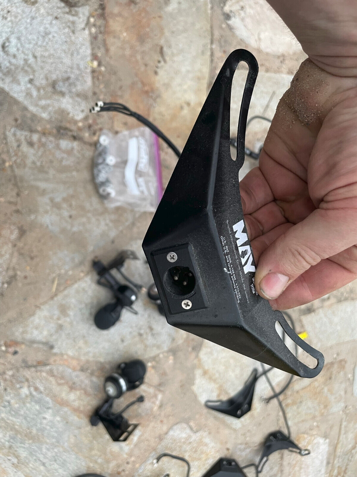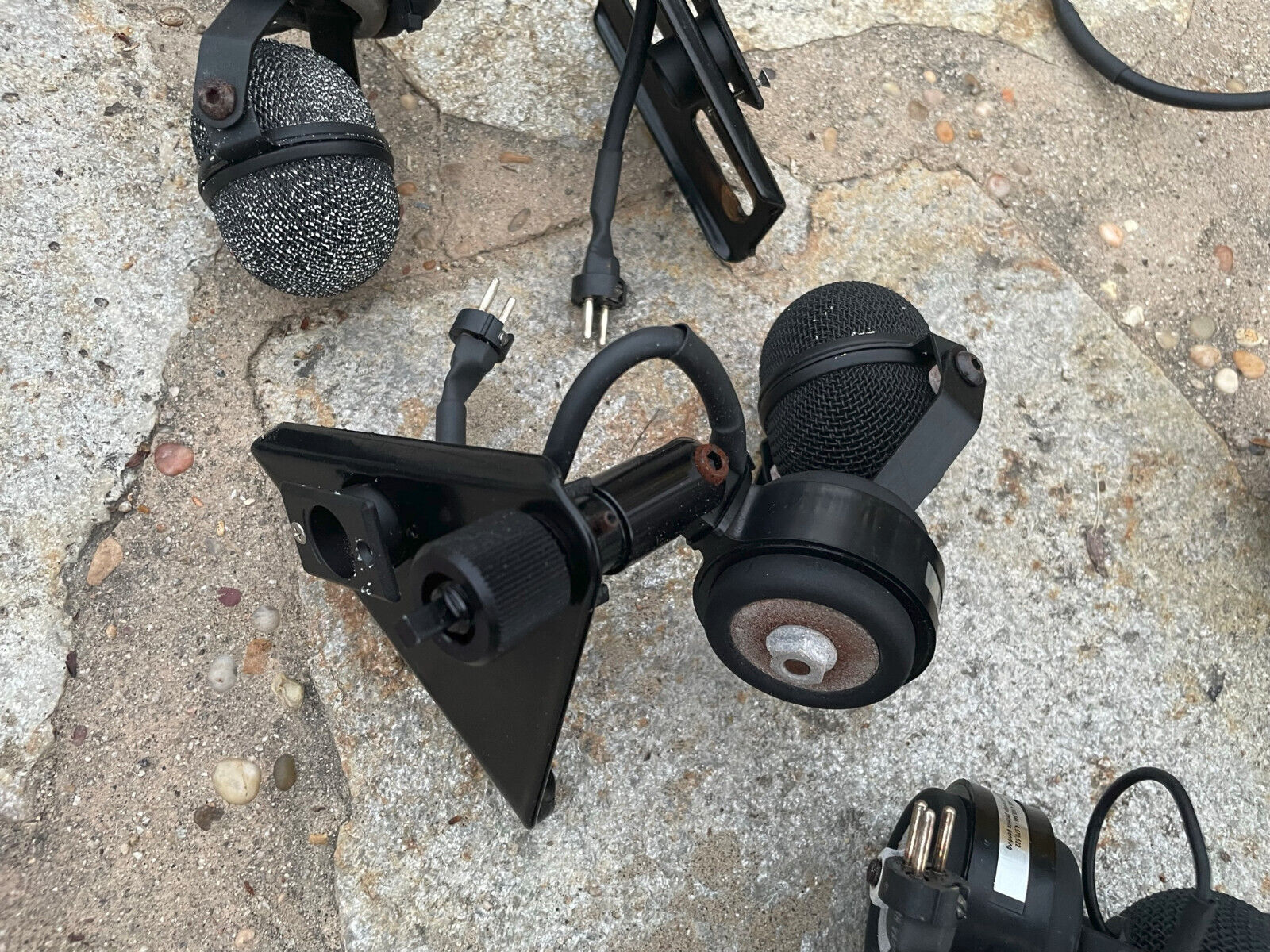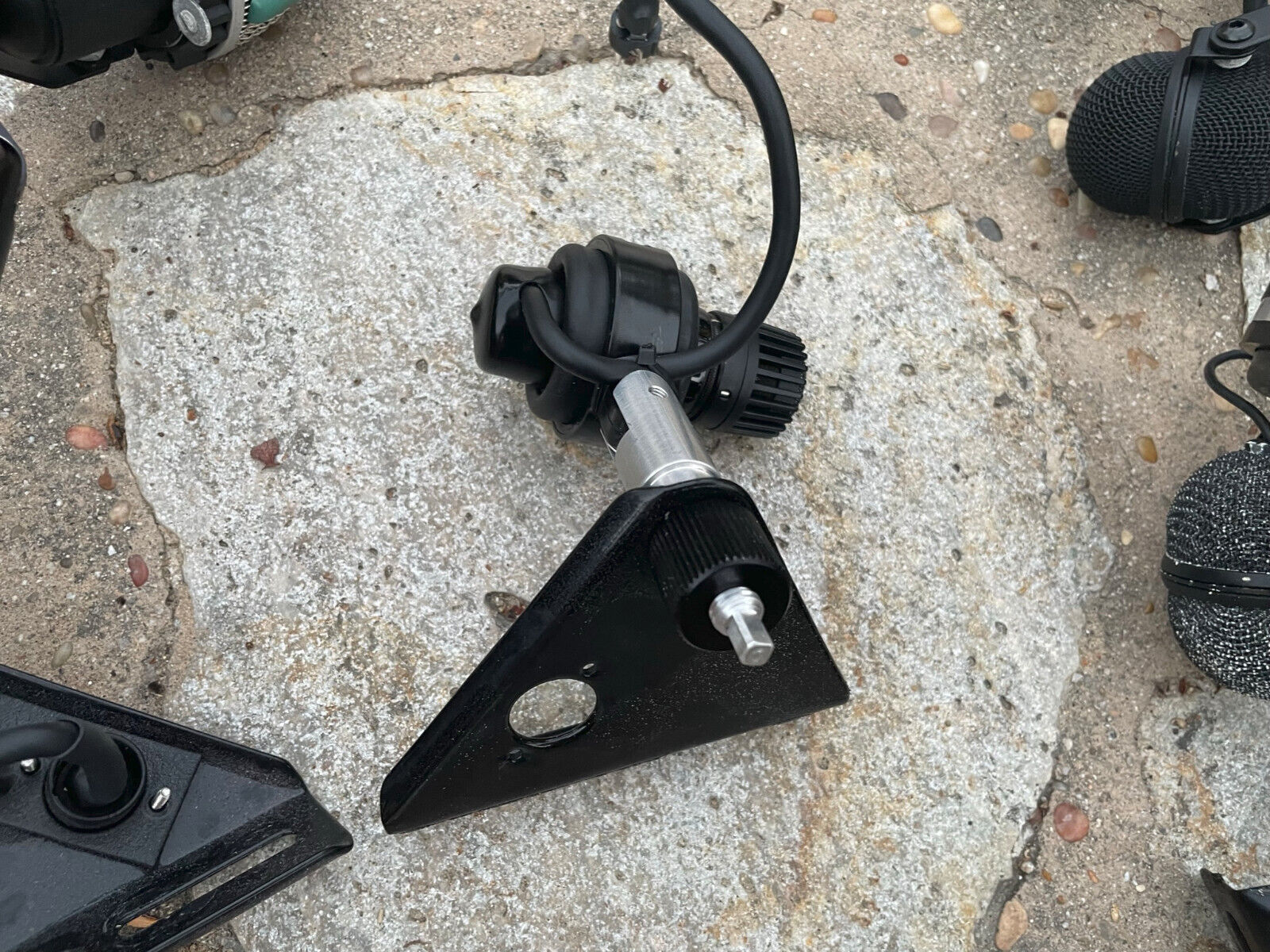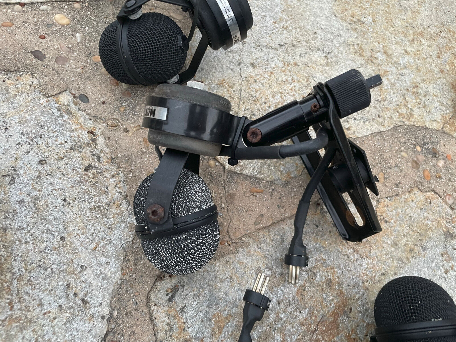 This is for a 7pc Randall May Mic Package. It includes one kick , a snare , and the rest are tom mics. These has the older style mounts that attach to the tension rods and rim (see last pictures for example of them connected to drums). The snare drum one has a side newer style side plug. You can purchase new side adaptors from the randall may site if needed. . Condition wise some of them have age from storage … some rust on the chrome on the mics (see pictures) . But these are great to have mics on your kit without having to drill holes. The mic wires go through the side port holes .