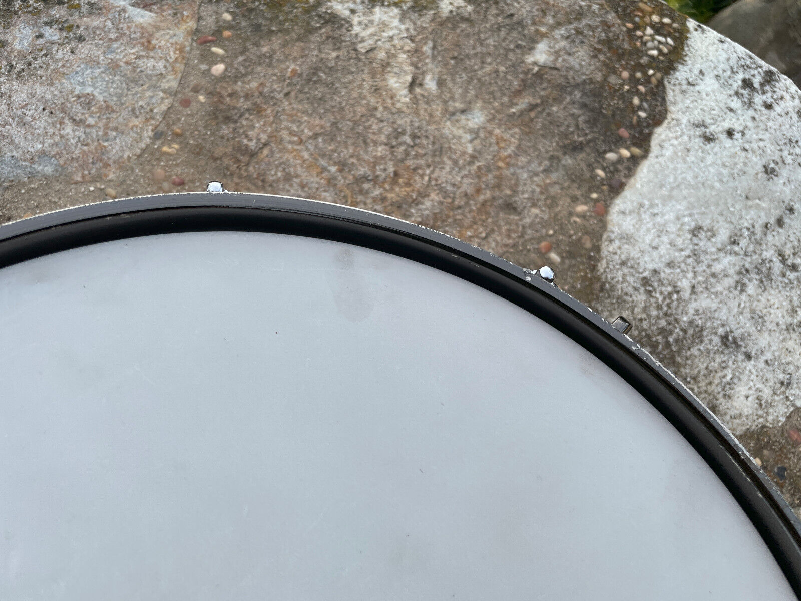 Overall I would rate it overall as excellent condition with the only exception is the top hoop has stick mars and wear on the black nickel due to being played. Good news is you could buy a replacement top hoop from dw. Shell looks great. Used drum.