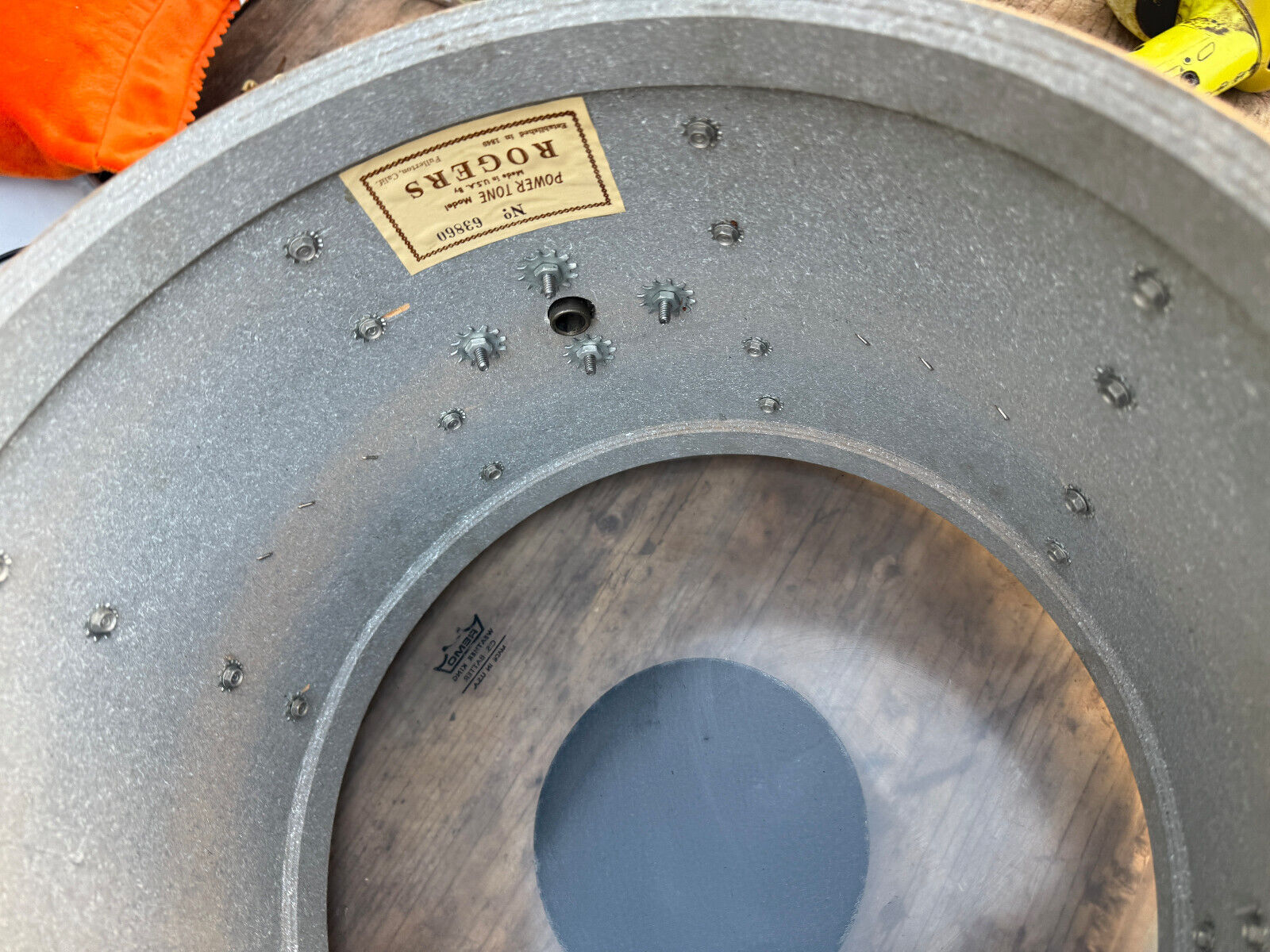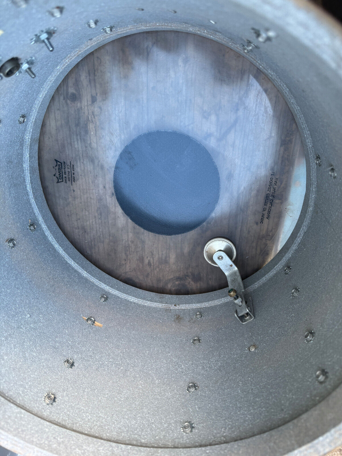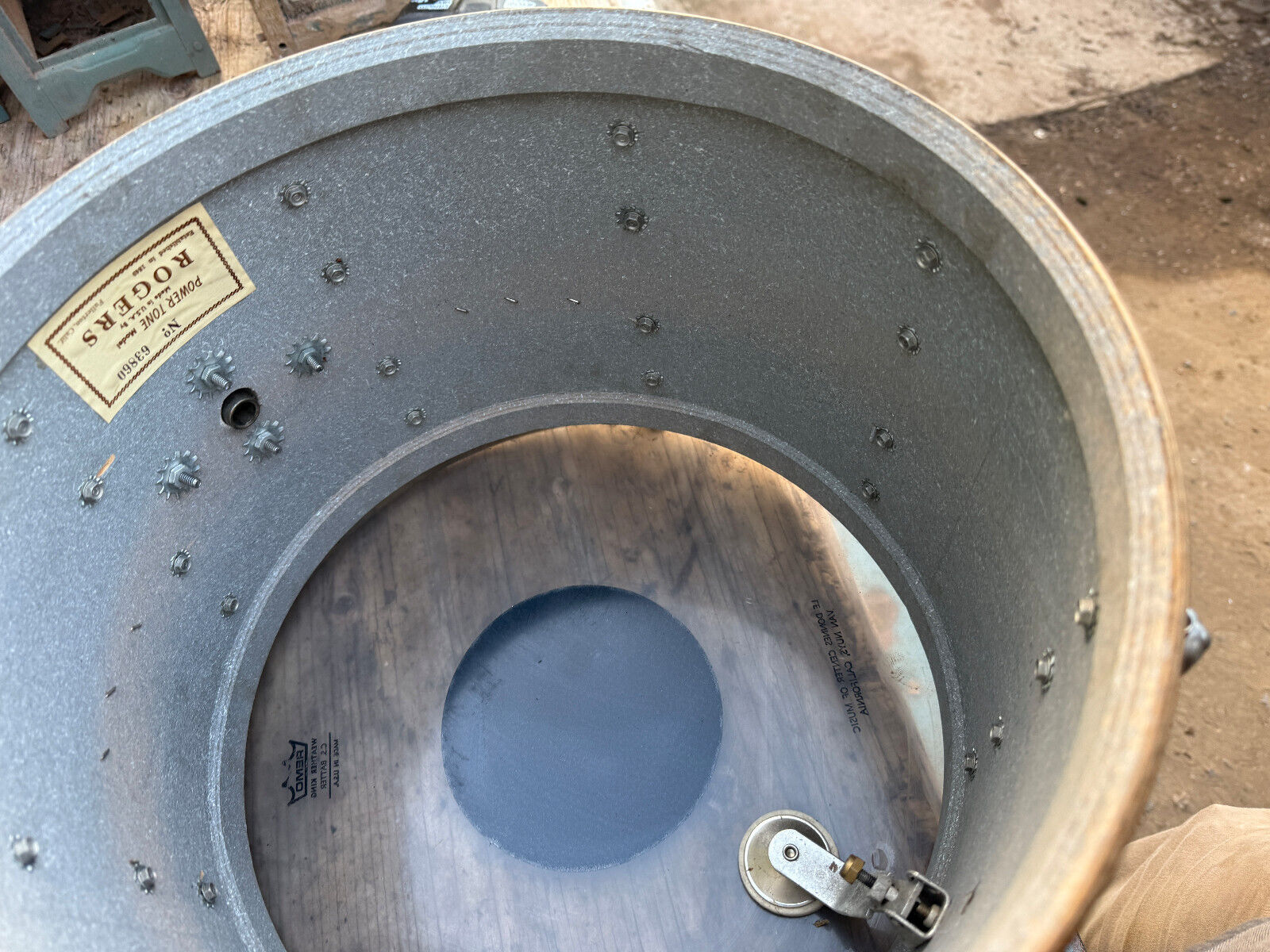 There is some mild rust on the drum here and there . Chrome could use a deep cleaning.The inside is pretty clean for its age though. The heads are poor and worn and should be changed.