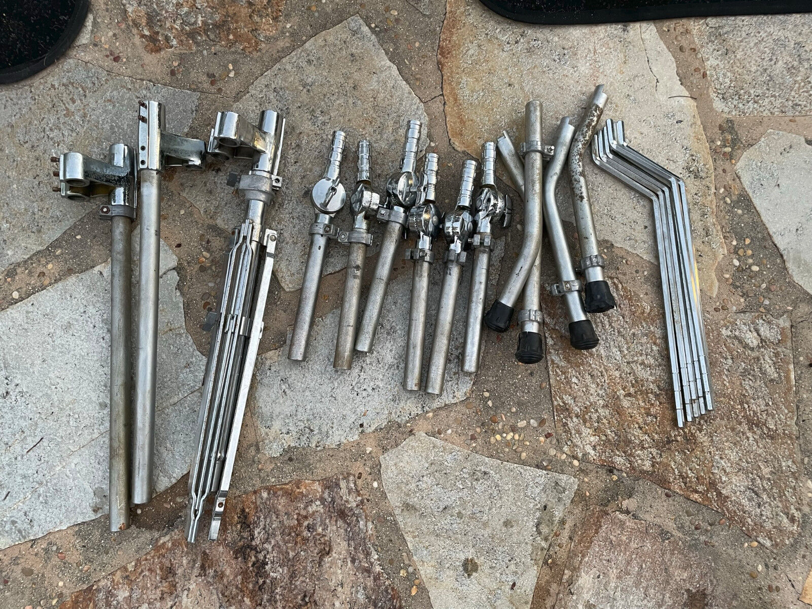 The second bass drum is included but the second bass is missing heads, claws, and bass drum hoops. Lugs and bass spurs included for second bass (see picture) . All other items are present on the other drums.