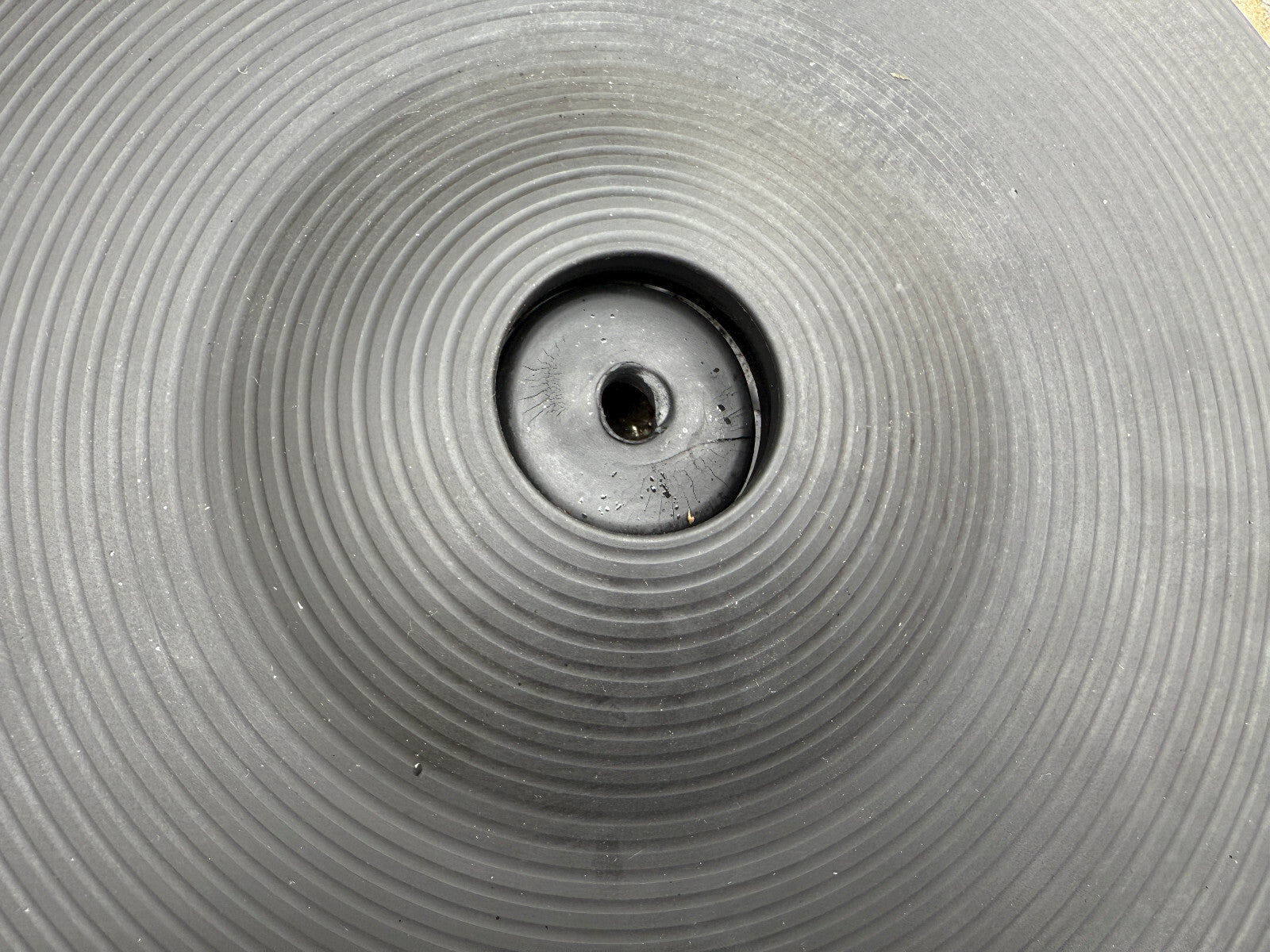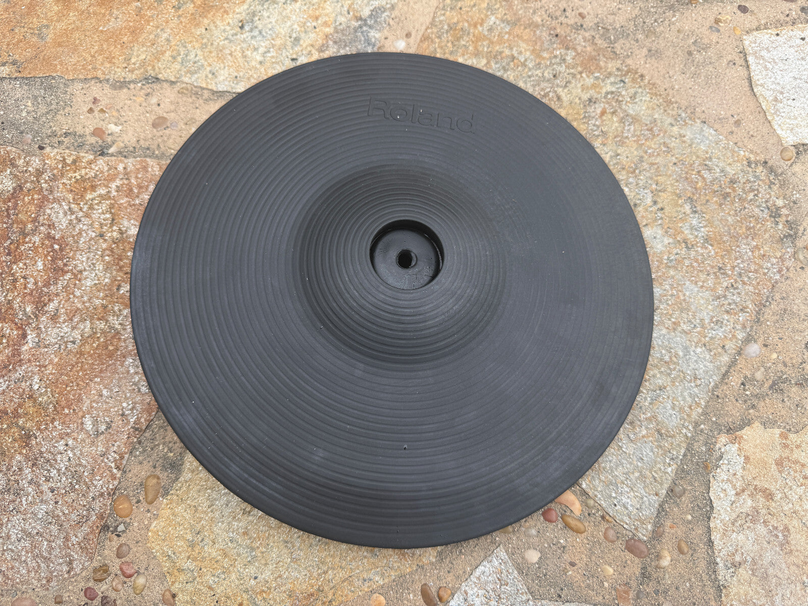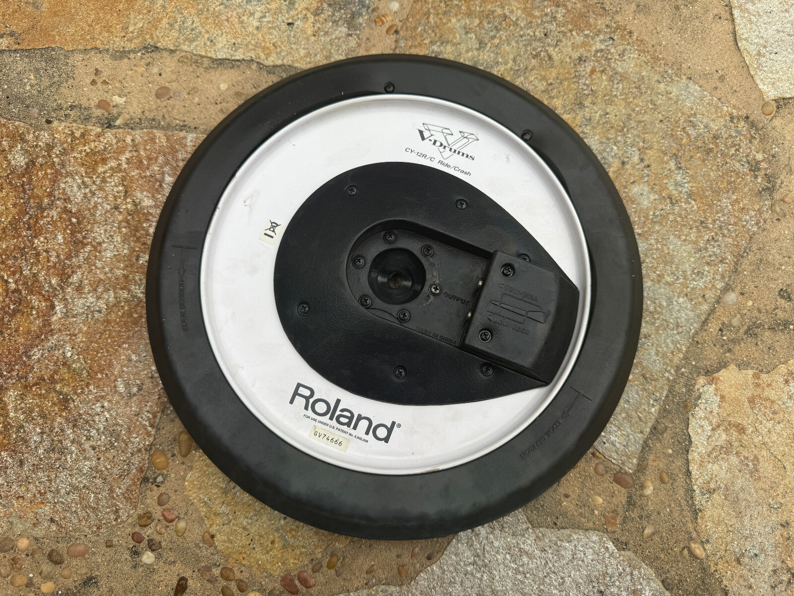 This is for Roland CY-12R/C 3 Way Trigger V-Cymbal Crash Ride V-Drum 12 r/c with ANTI SPIN.The cymbal is in very good condition. Some splitting on the rubber around the keyhole. A little wear but looks good. I am