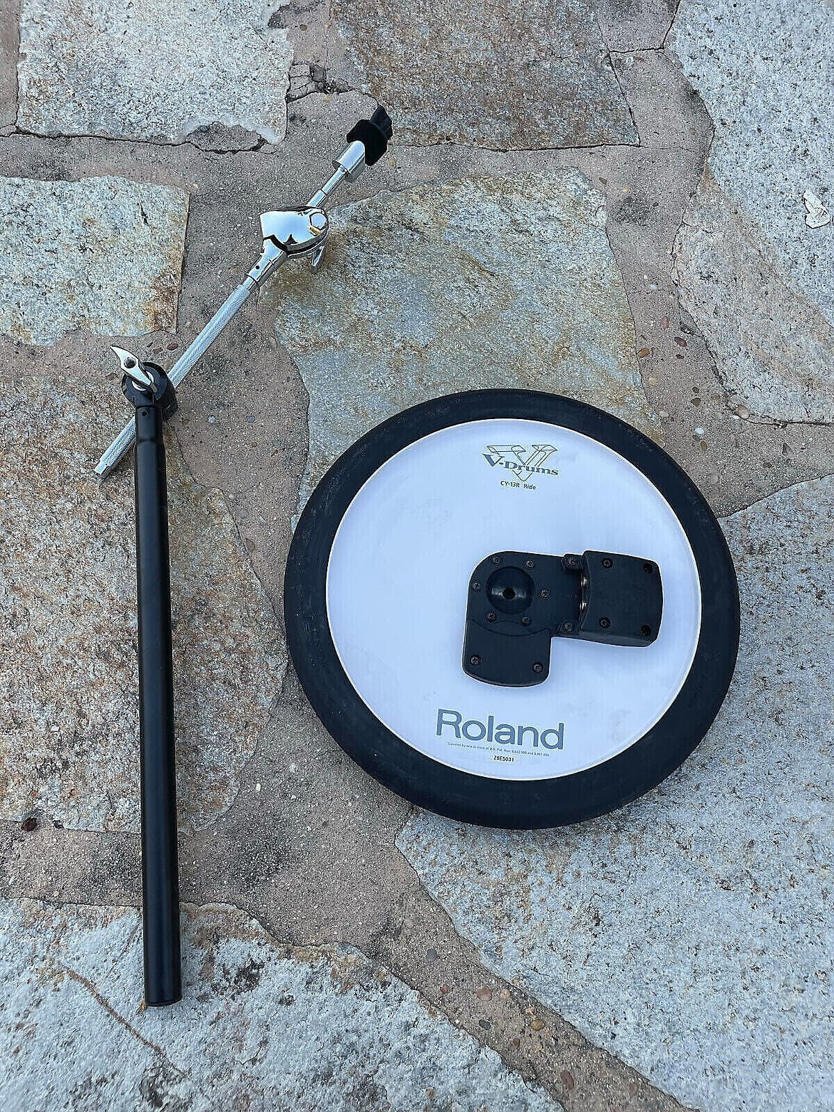 This is for Roland CY-13R V-Drum 13" Triple Zone Ride Cymbal 15 12 r/c with ANTI SPIN.The cymbal is in very good condition.  A little wear but looks good.  Includes the arm pictured .I am selling it for 119.95 buy it now. Email for a shipping quote if your outside the US. Thanks