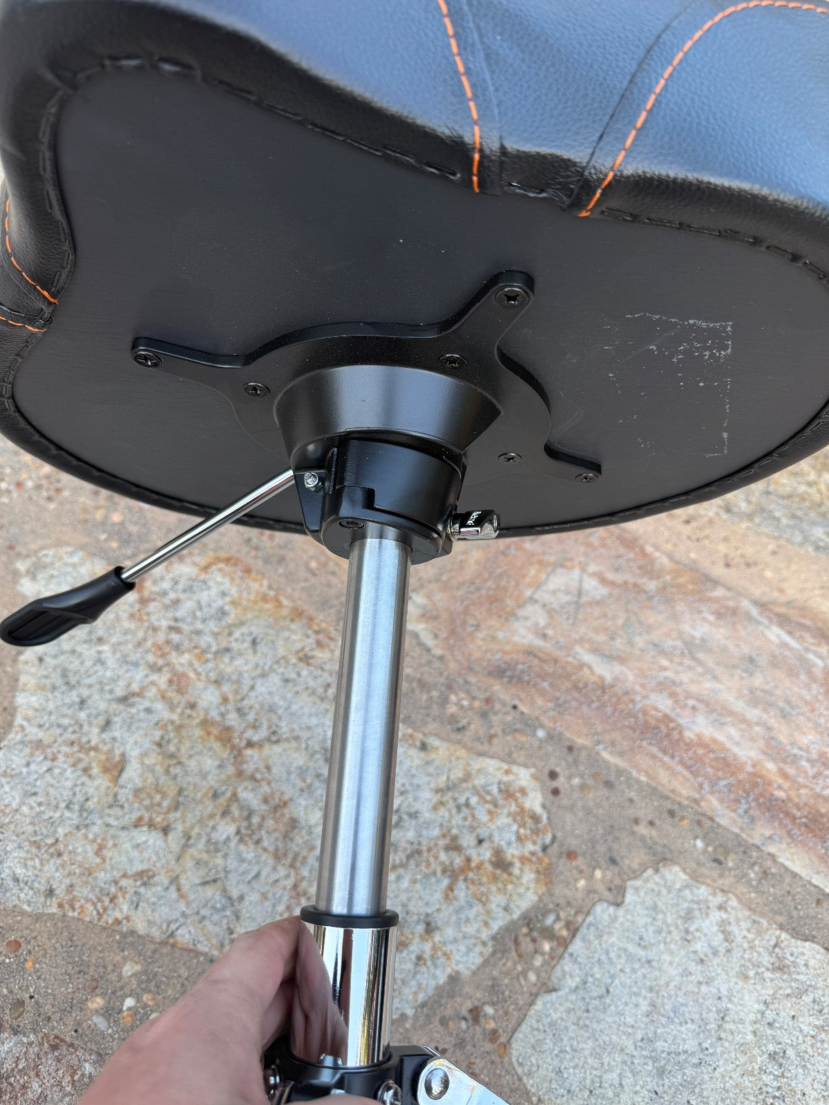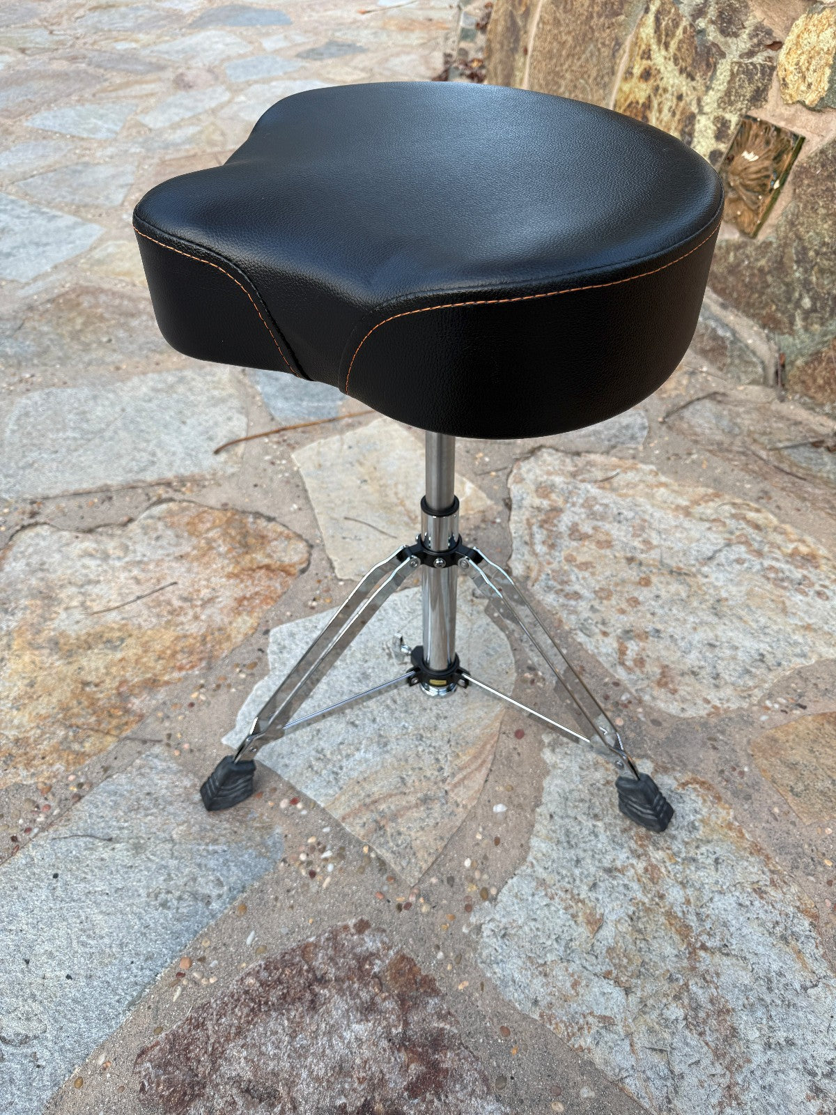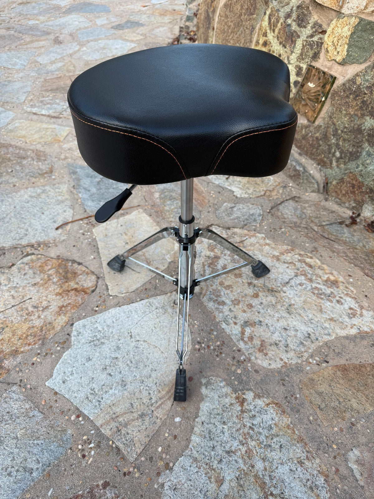 SADDLE DRUM THRONE WITH RUGGED VINYL SEAT AND HYDRAULIC ADJUSTMENT