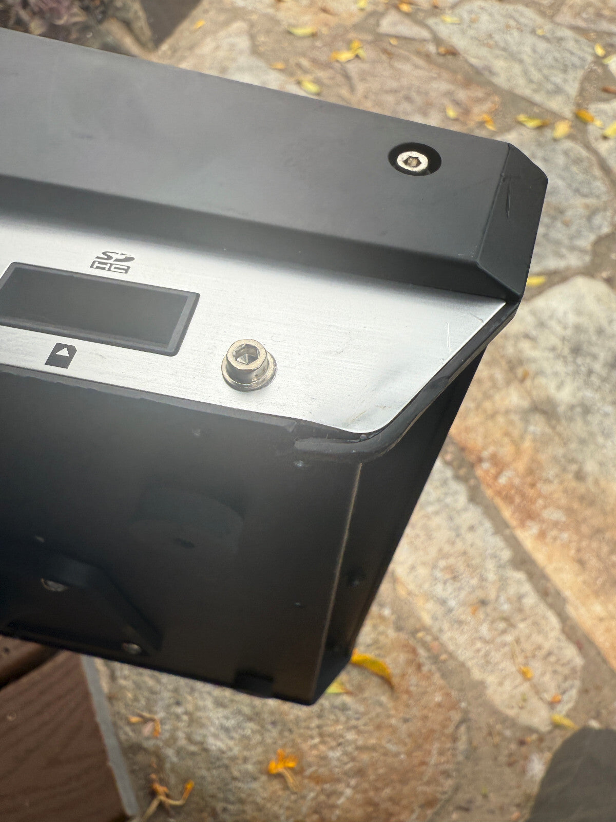 Has some spots along the bottom edge and a dent on the bottom edge of the module.  Otherwise everything is tested and working .