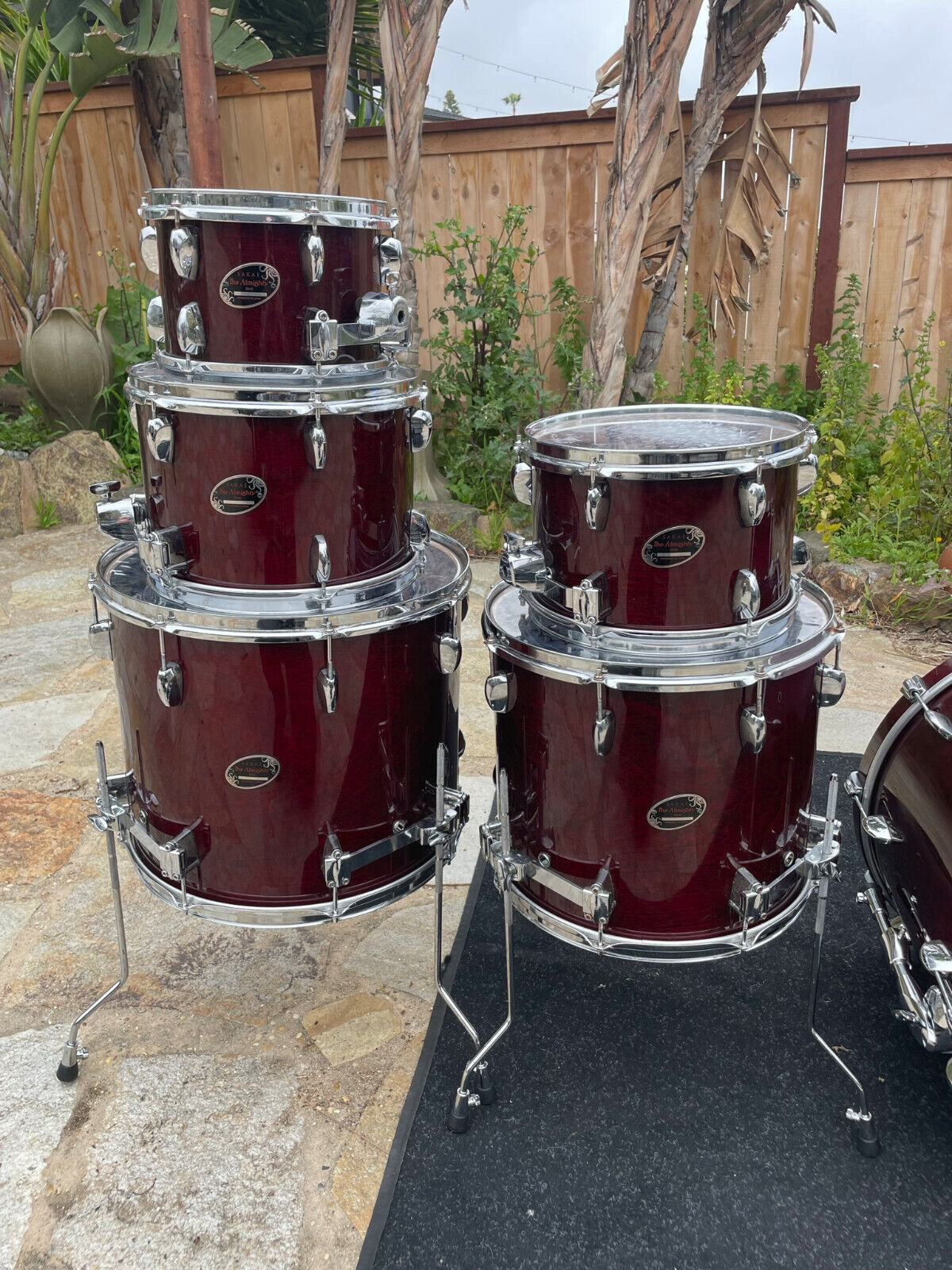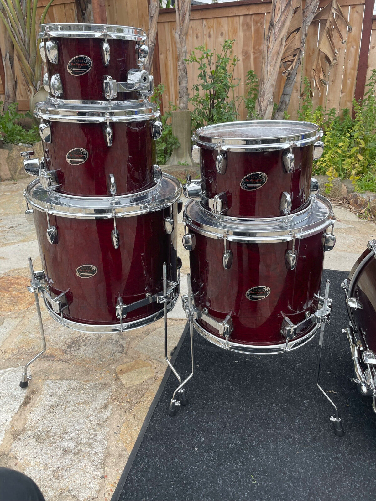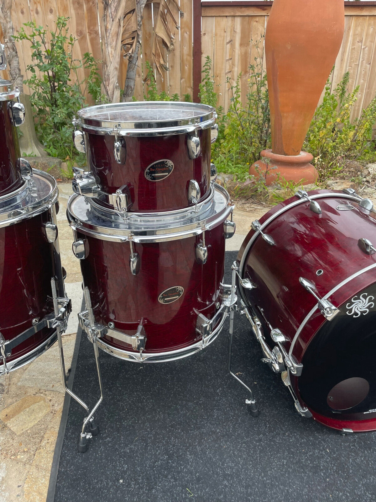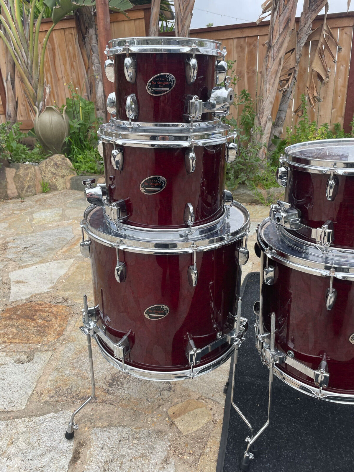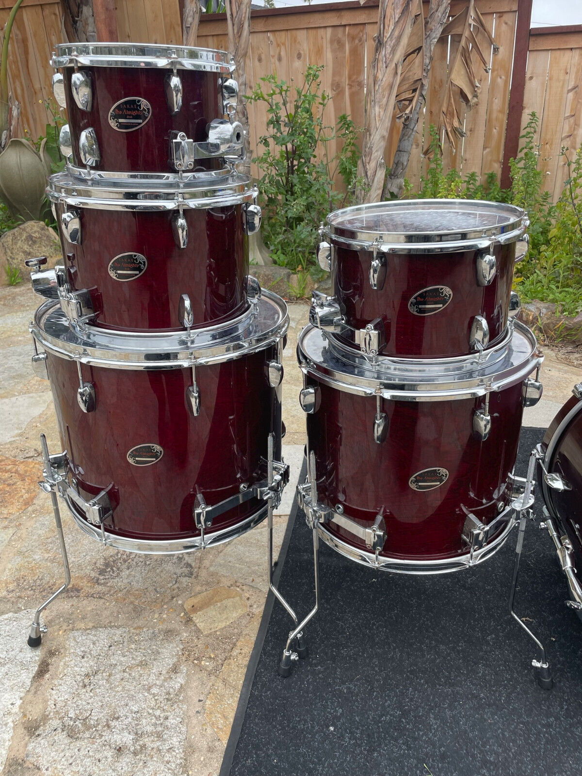 Includes floor tom legs and three Sakae tom arms in the pictures.