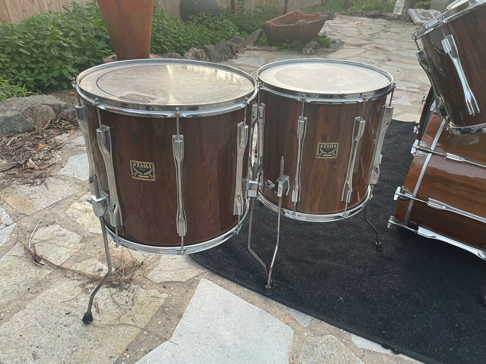 Condition wise I would rate the drums as good/very good for a almost 40 year old set. Each drum has some minor marks/scratch spots here and there. Some of them (22,10,16, maybe another) have some polyurethane outer clear coat wear which is common with some of these era drums but doesnt effect the sound but you can see the wood of the two bass drums tint is slightly off as a example.