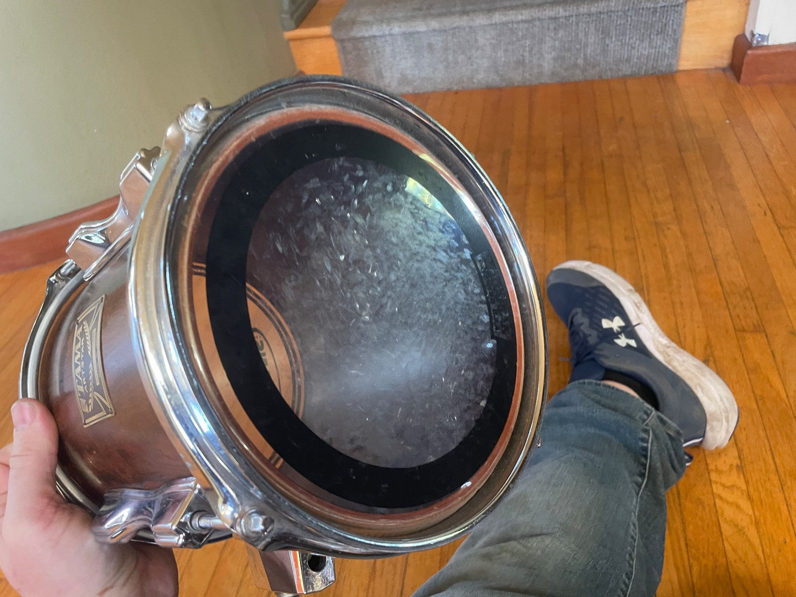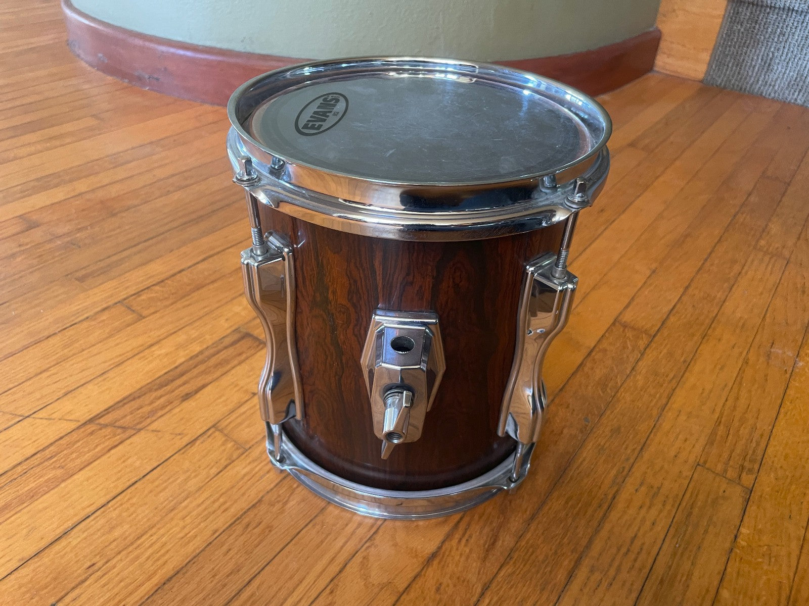 Has some normal wear and marks on the shell. This one is all original but there is no serial number on the badge. I have seen this on some 8" toms before. Also the clear coat seems to be aged / worn off on the shell but its a nice dark color. See all pictures for overall condition.