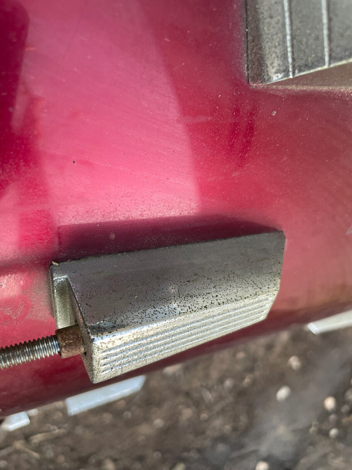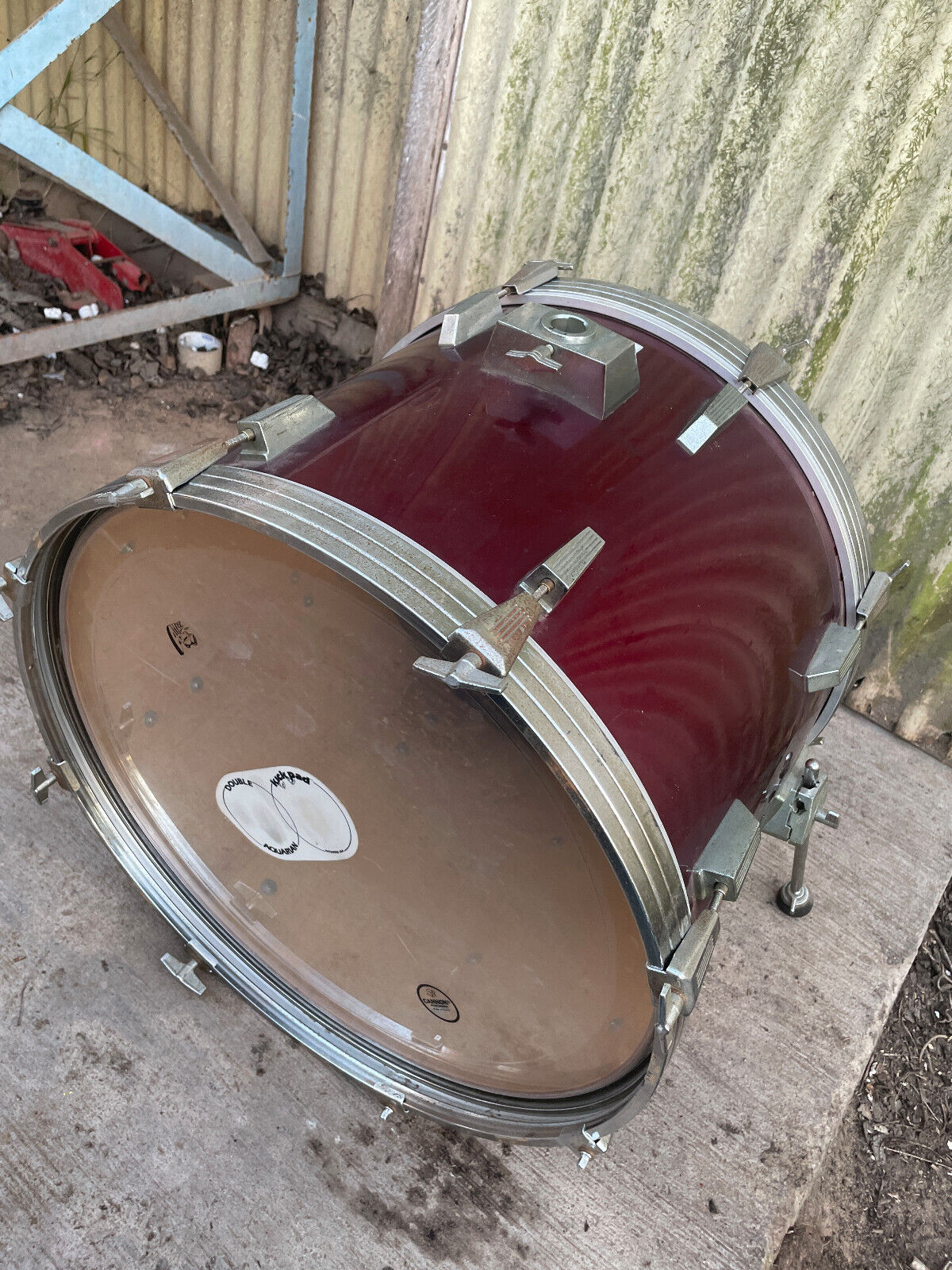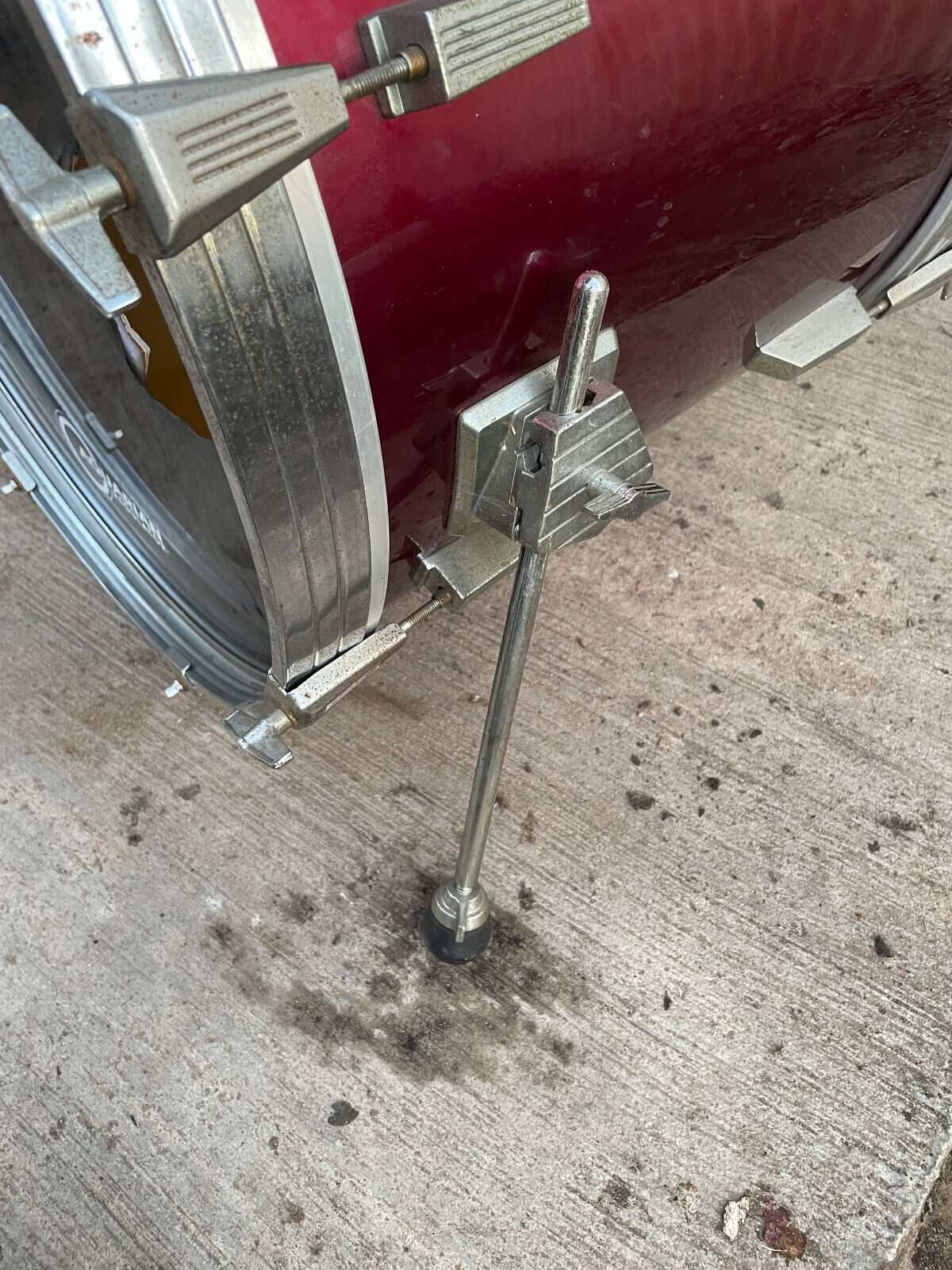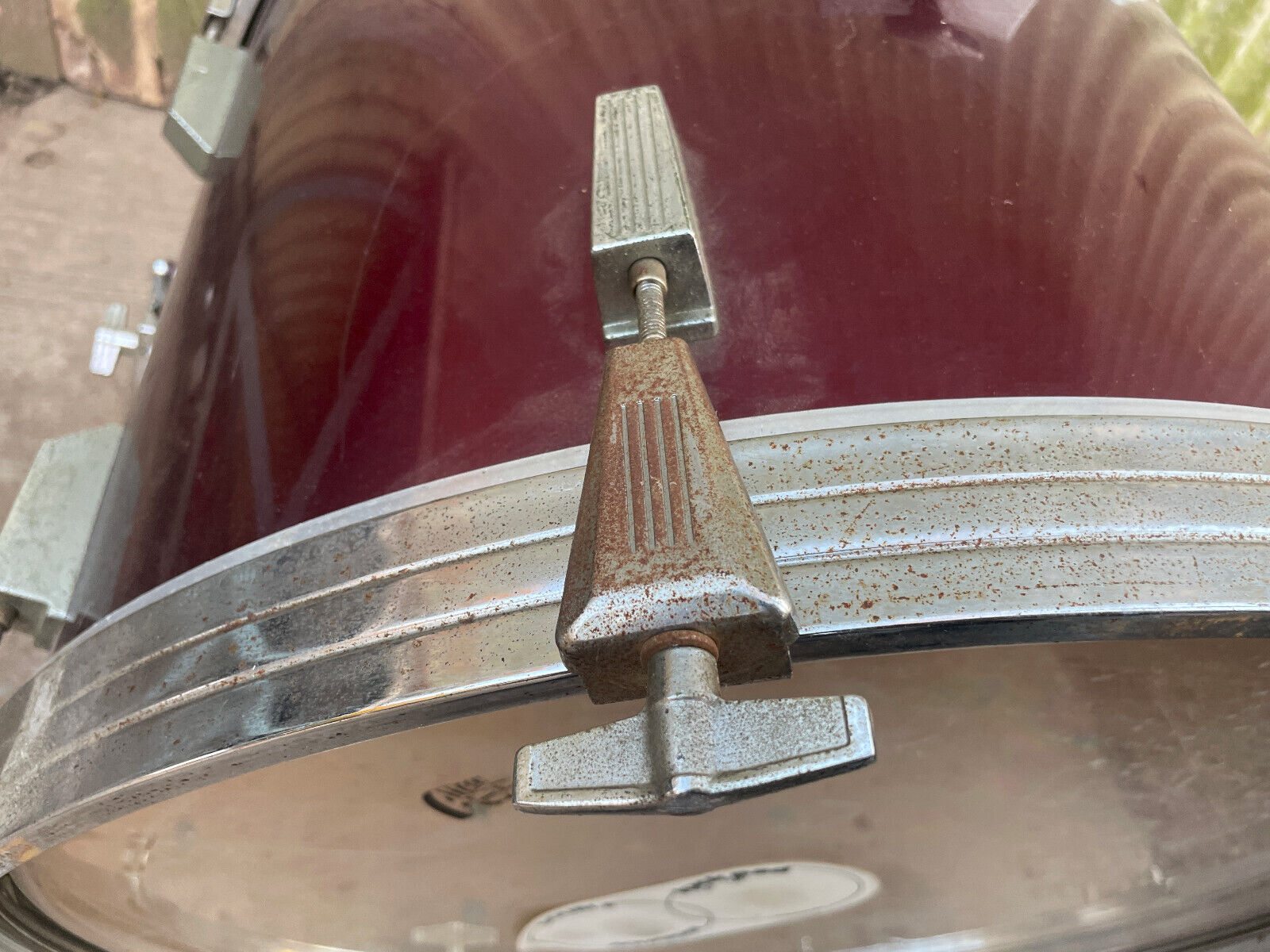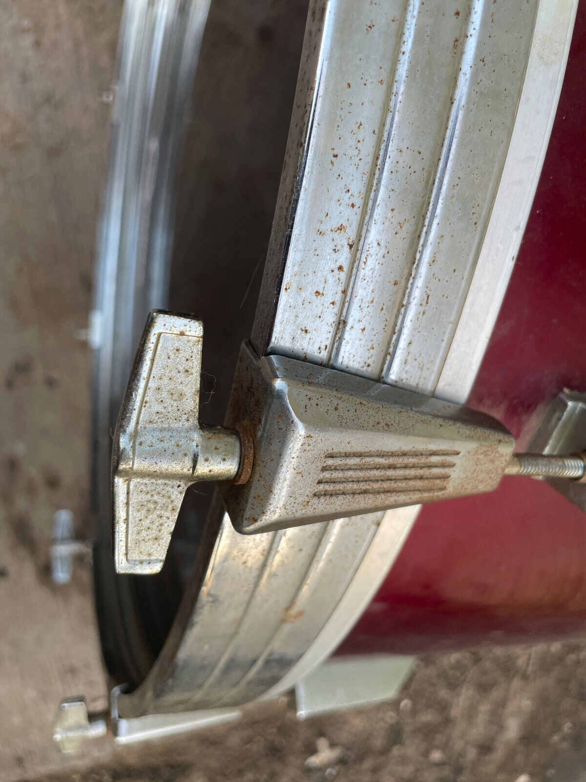 Has a small tear on the front head. Has rust and several scratches. Otherwise working .  Could use a cleaning on the hardware