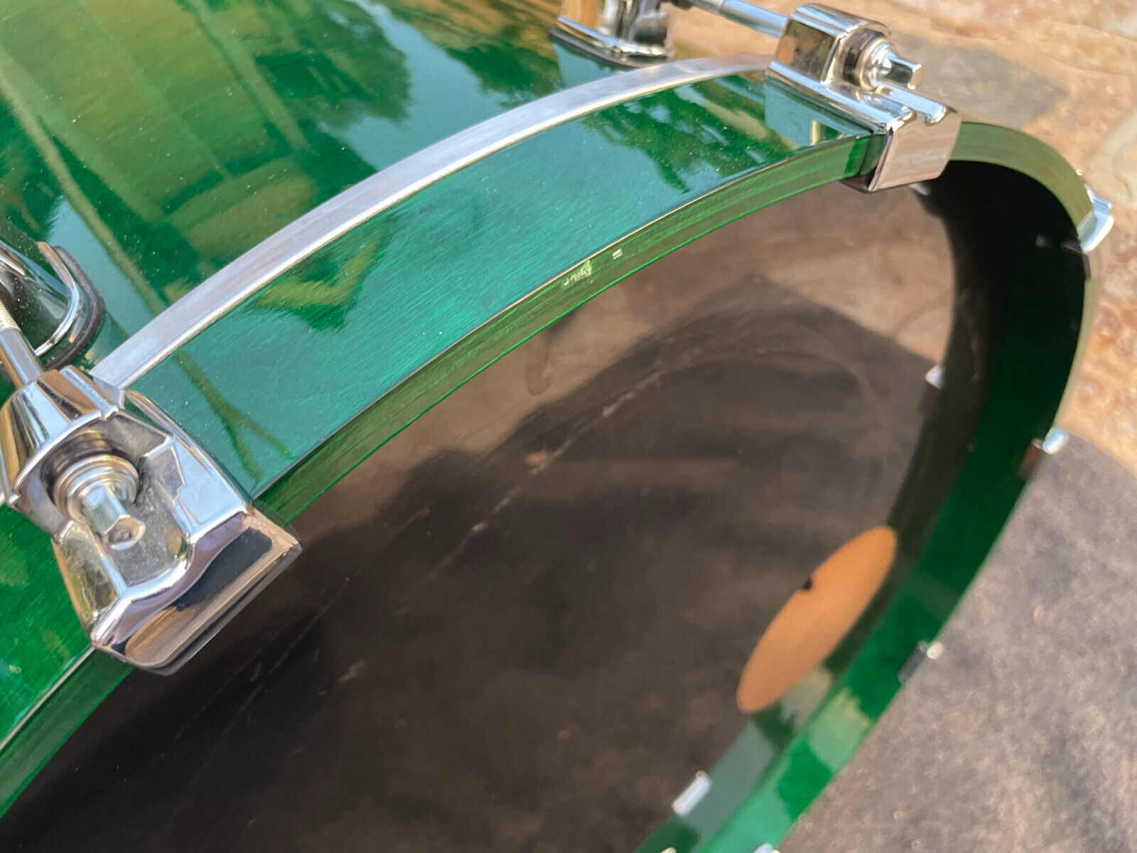 VG condition . Great sounding drums!! A couple marks here and there and on bass drum hoops but otherwise looks good.