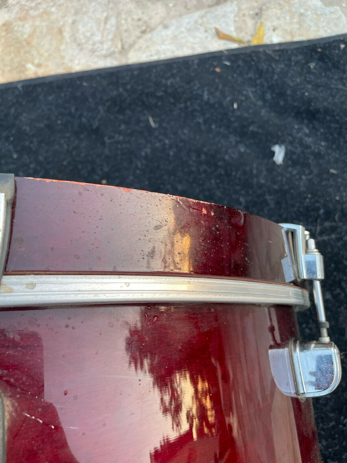 Drums are in very good condition. They have been played. One bass claw was replaced and the wing nut for the tom post is missing. Needs new heads but otherwise looks fine