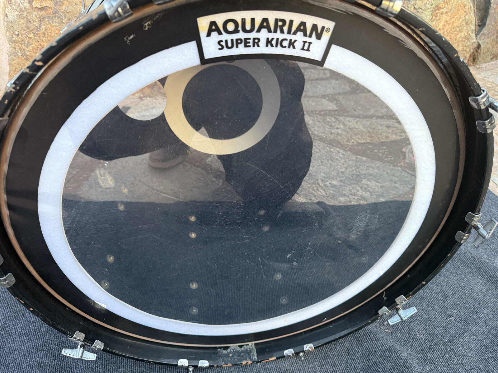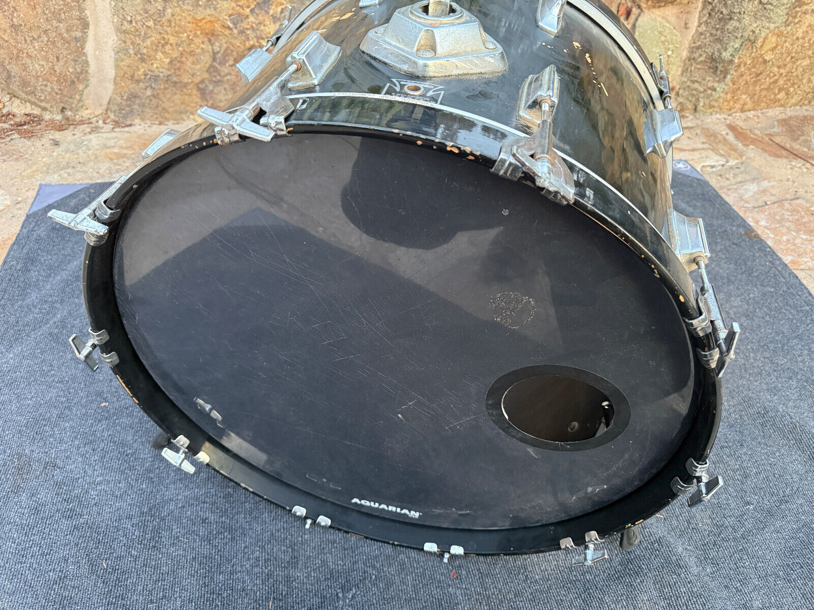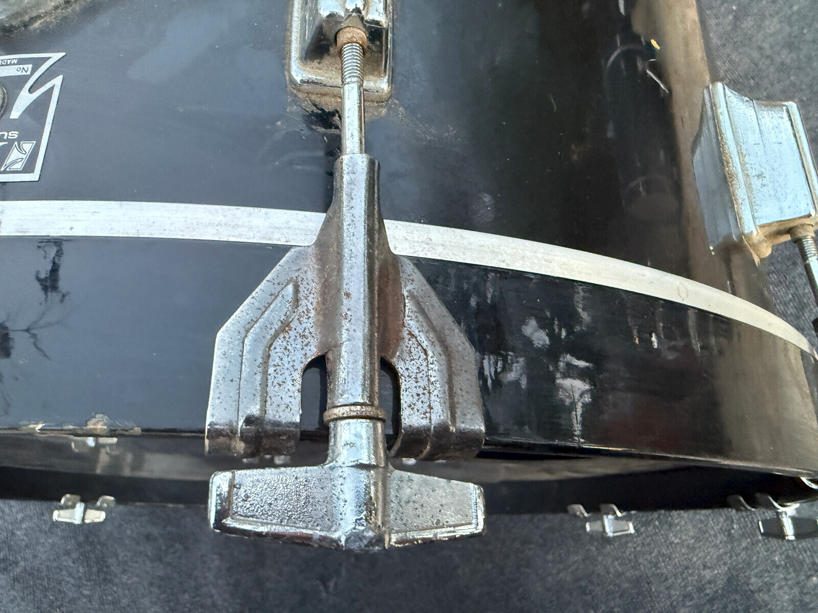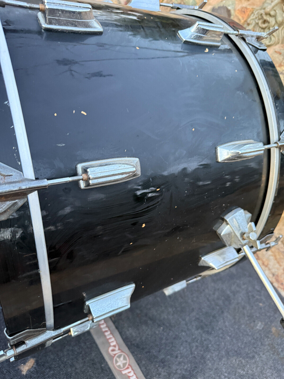 In players condition. Has rash spots and normal wear on the finish but bearing edges and drum inspected and drum is in working condition. Just cosmetically not the best. The bass drum spurs are not original .