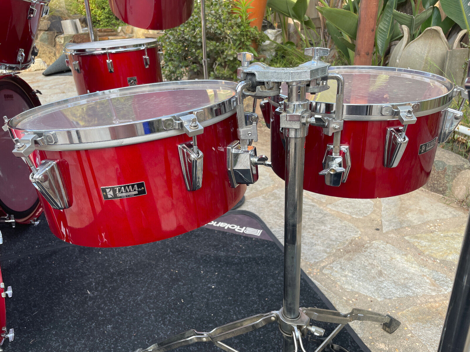As many of you know finding these drums in Peart sizes can be very difficult to find! The concert toms are considered very hard to find....the gong would be considered rare .... and the timbales .. extremely rare... I have never seen a pair of timbales for sale in this finishin over 15 years of looking. I have spoken to many tama experts who have never seen any for sale ever.