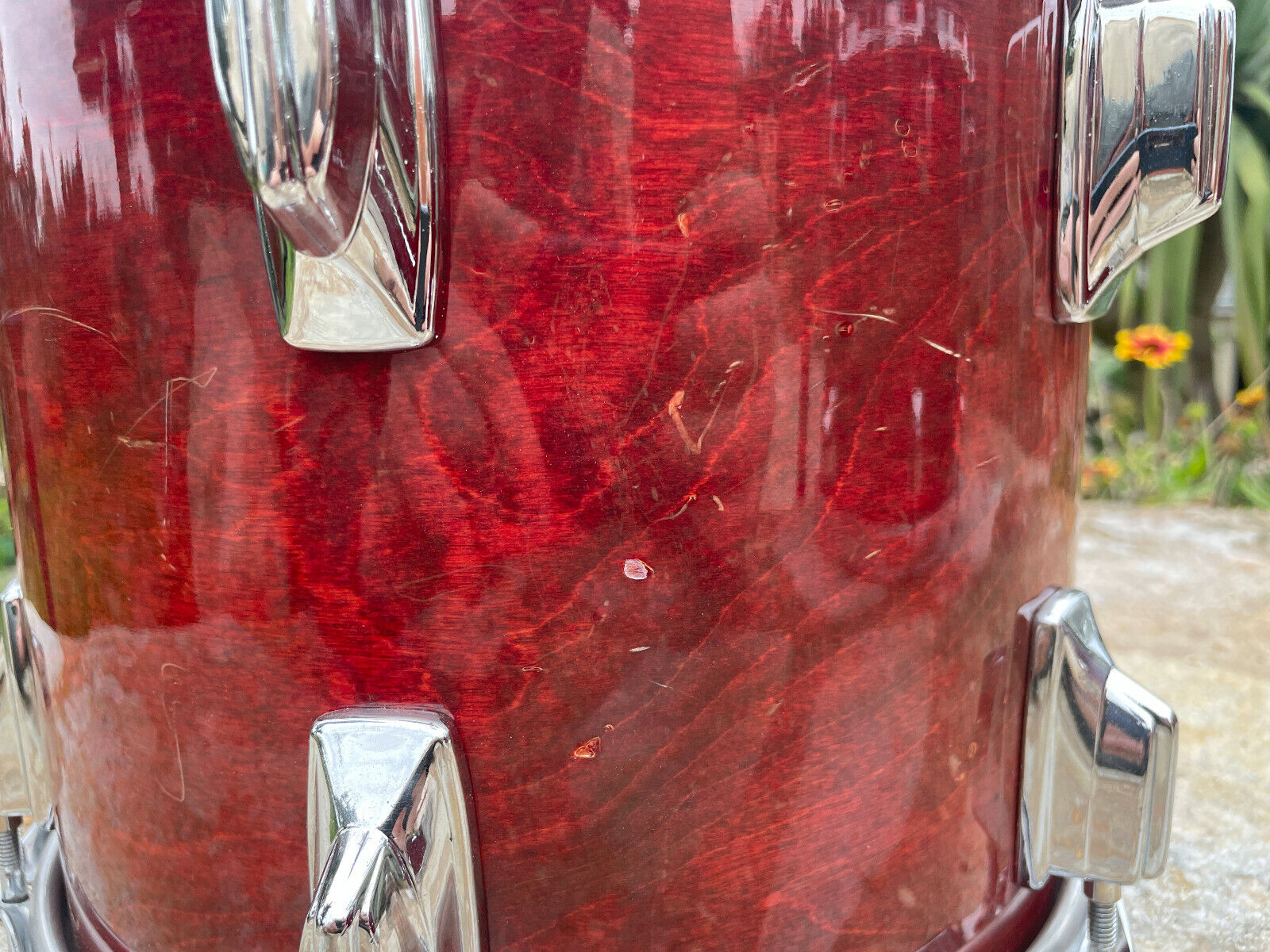 Some scratches. Also some wear on the red stain due to polyurethane wear. Players condition.