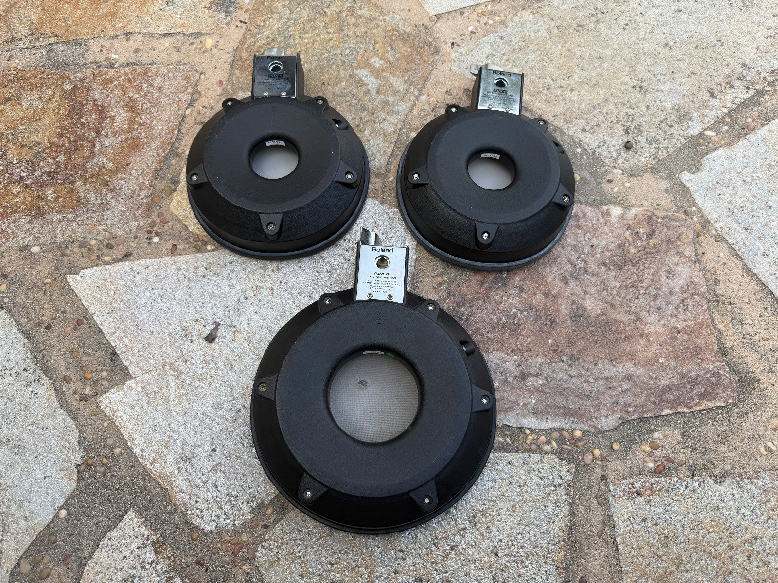 One pdx-8 and two pdx-6 are included. Fair condition. The pdx-8 has a punctured head. They all have some cracks on their rubber rims but otherwise are working pads!