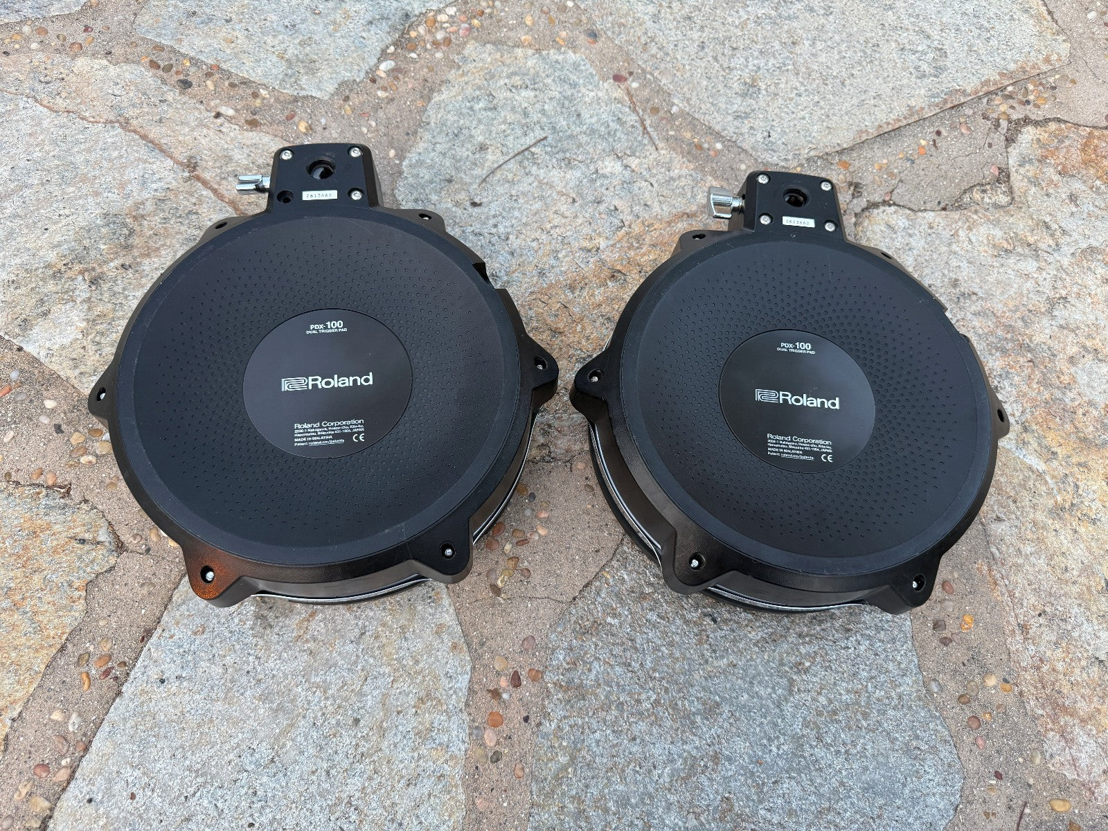 TWO PACK Roland PDX-100 V Dual Trigger Drum Pad pdx100. They are in vg condition. A couple marks on plastic on side and back but looks fine. A couple spots on the mesh head