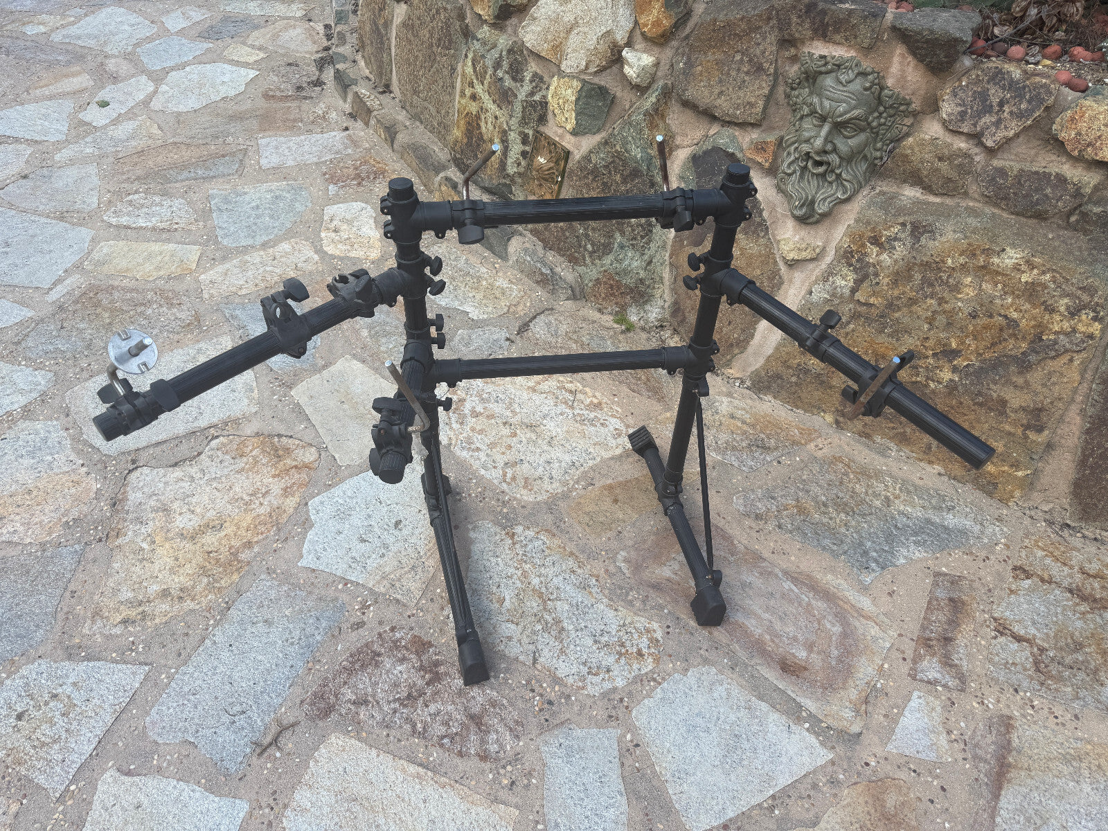 Has rust on the rack / screws / l rods but includes clamps . Comes as pictured