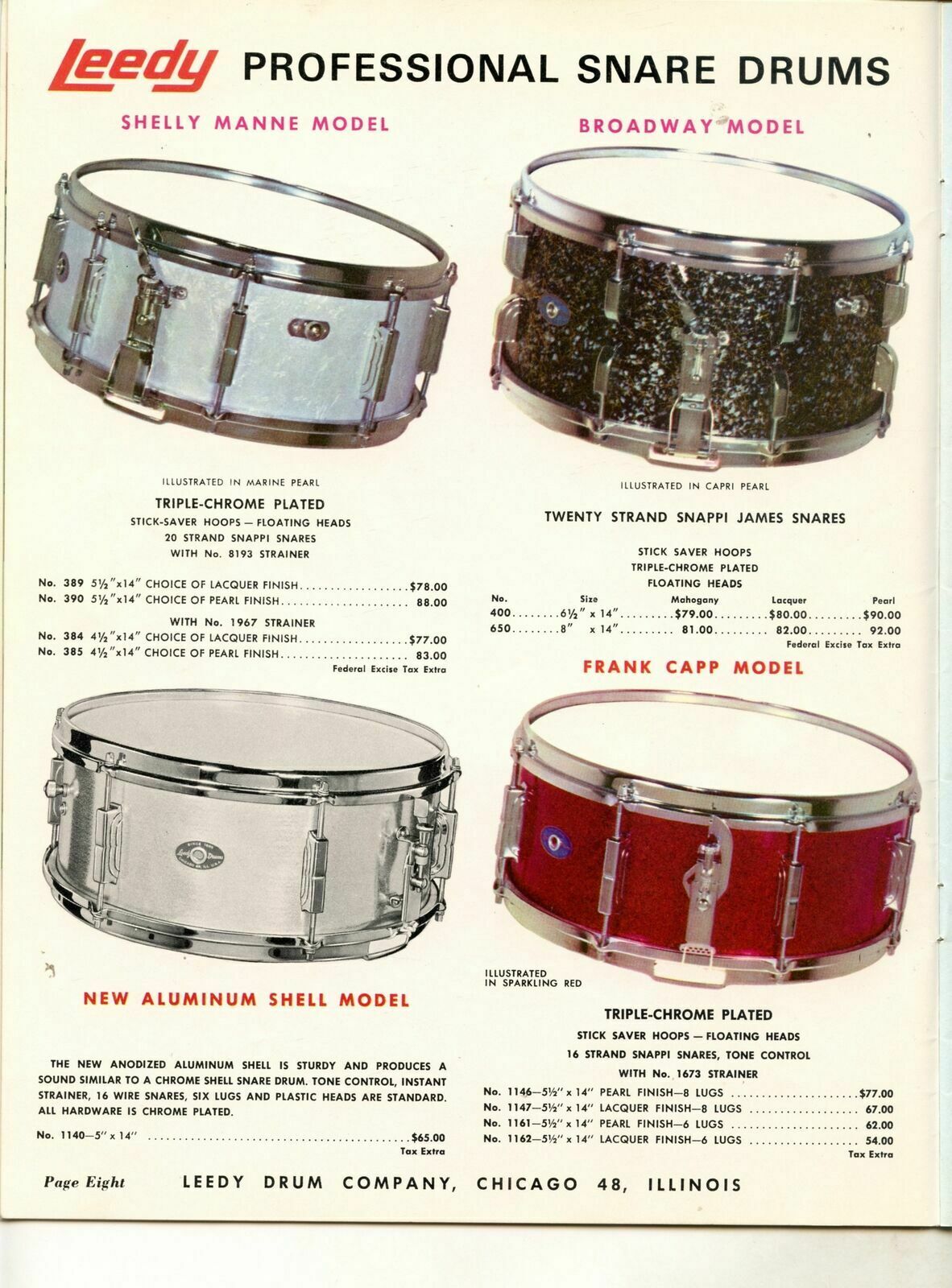 This is the #1140 "New Aluminum Shell Model" of the Slingerland era of Leedy. It is shown in Catalog #70 circa 1965.