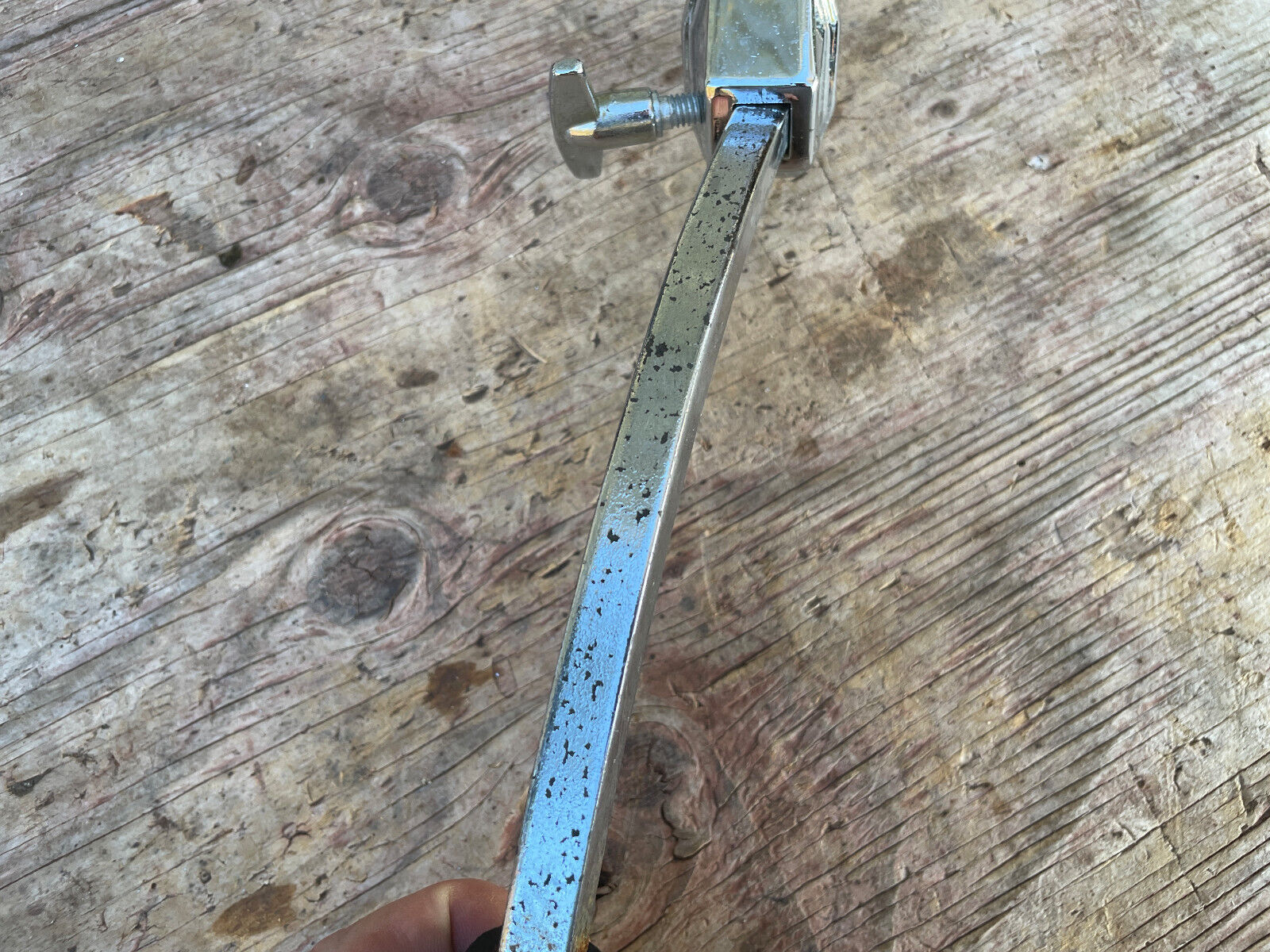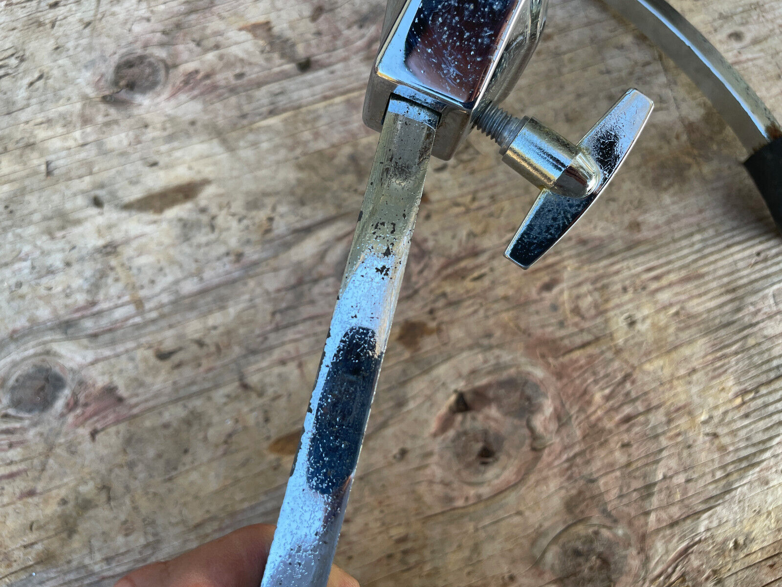 Has some flaking on the chrome and pitting. One rubber foot missing. So not the best condition but working and part is there