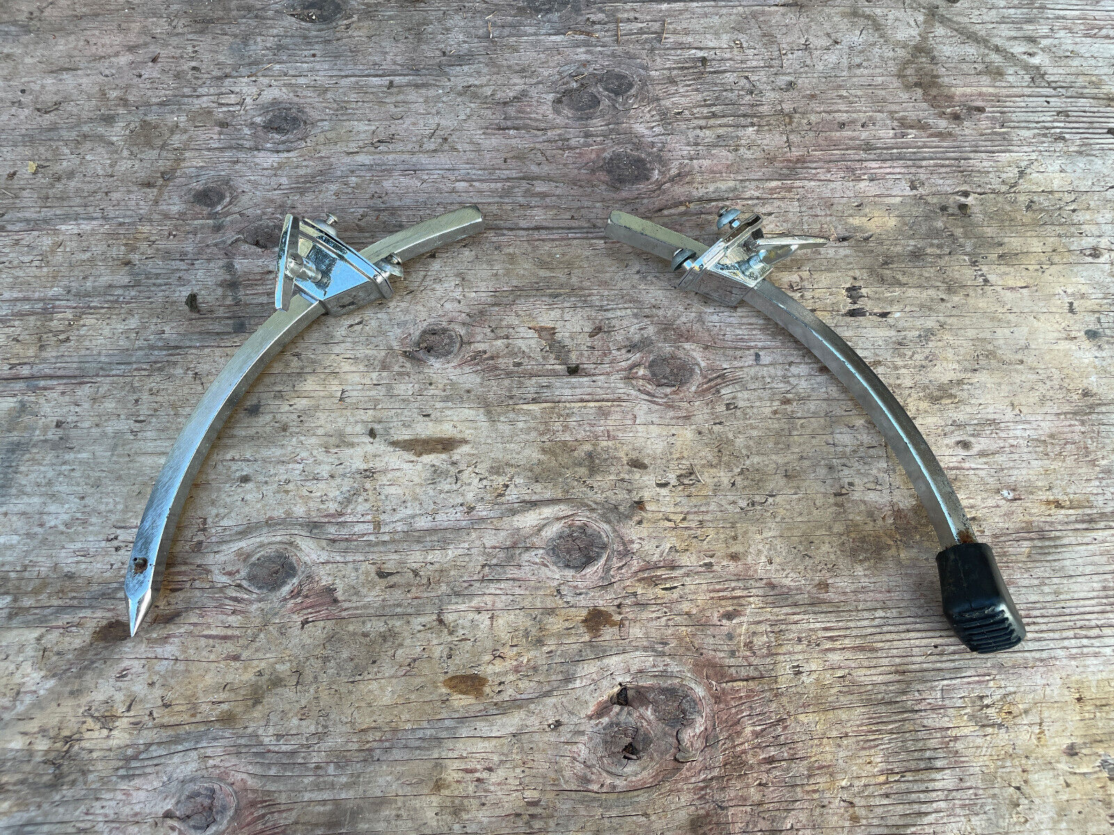 Vintage Ludwig Drums 1/2" Large Curved Bass Drum Spur Pair W/ Brackets Pair