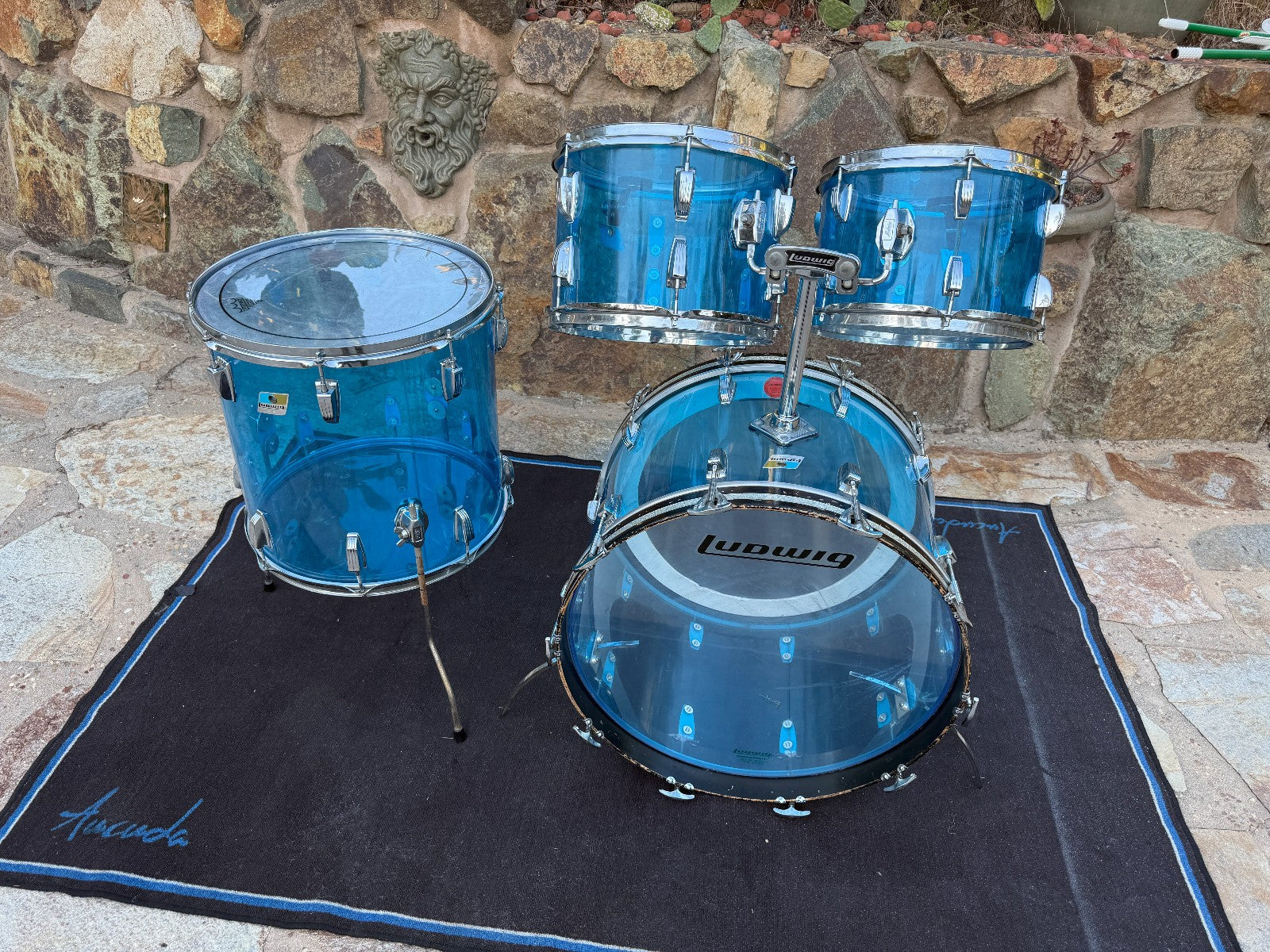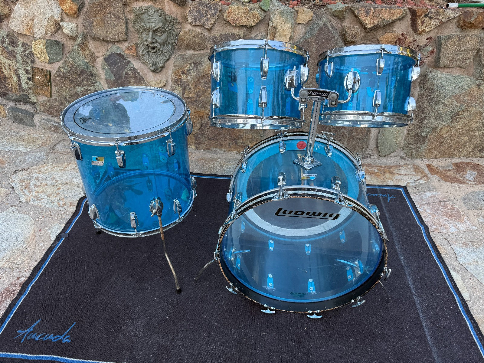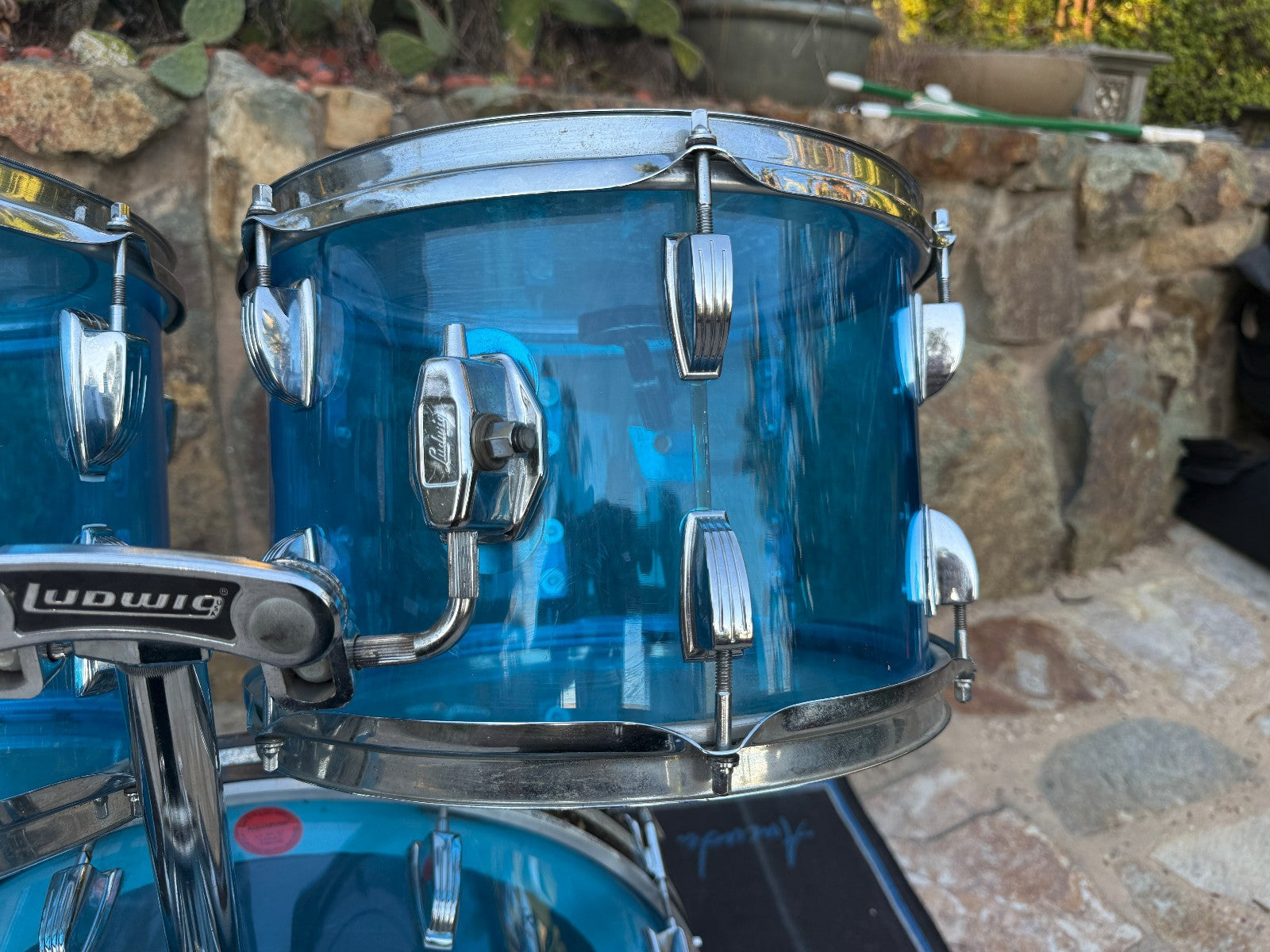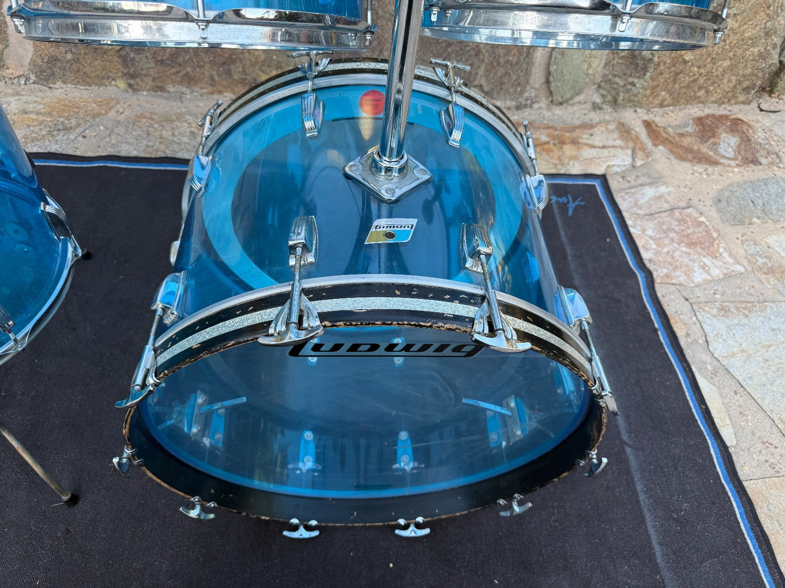 Vintage Ludwig Vistalite Blue 4pc Drum Set Kit 22/12/13/16 70's
