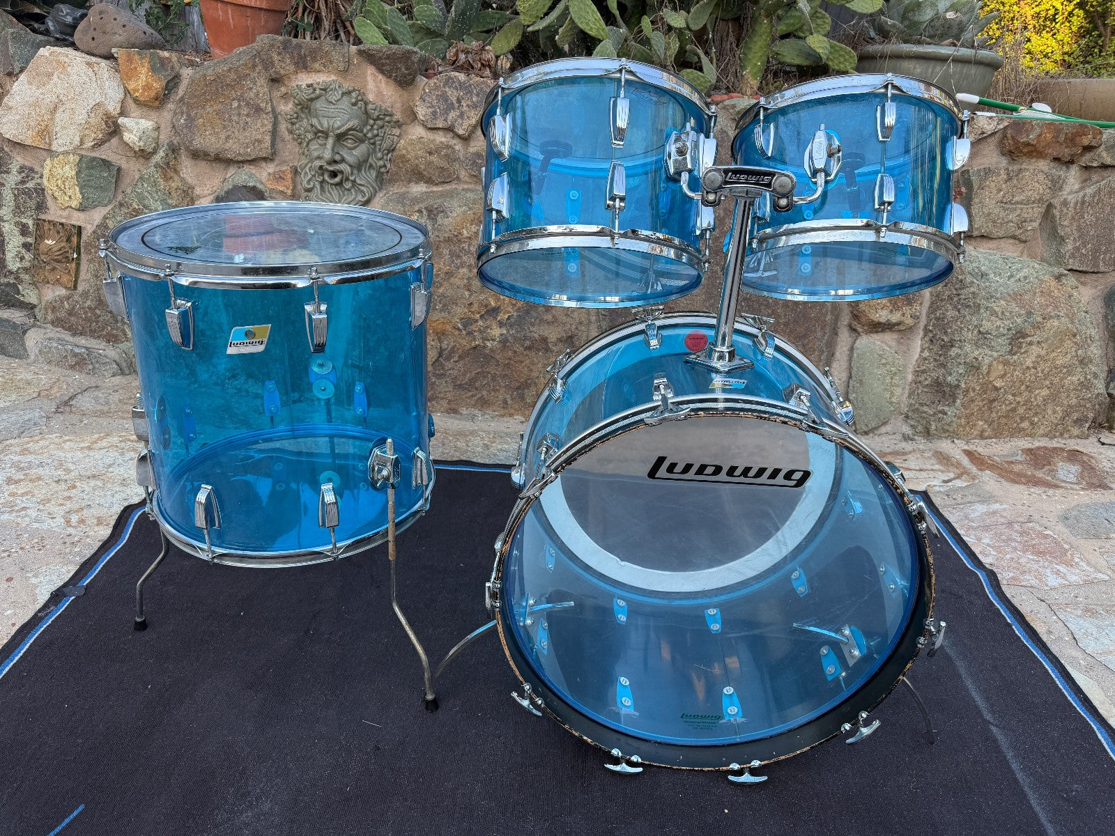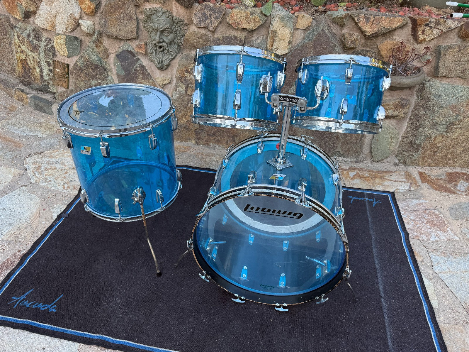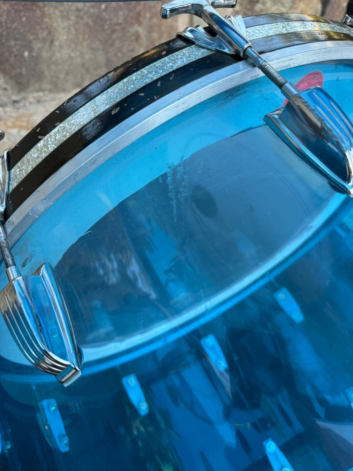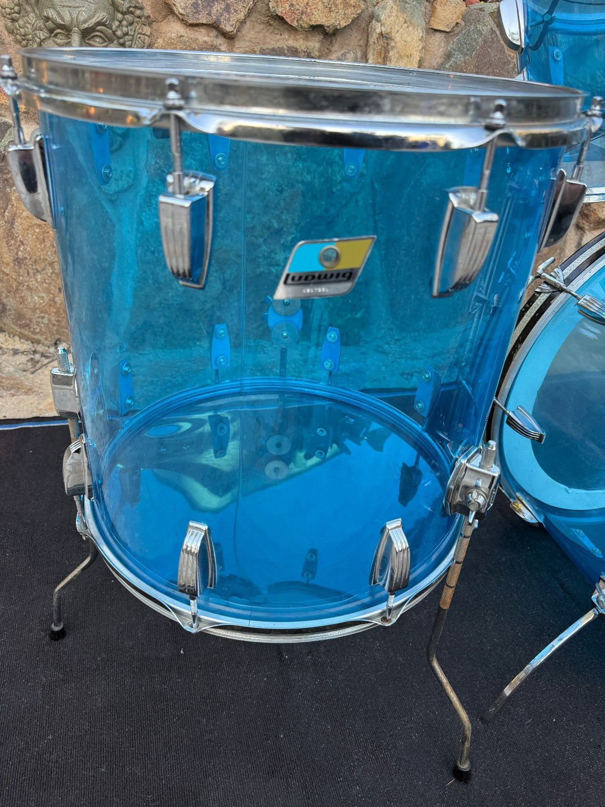 Vintage Ludwig Vistalite Blue 4pc Drum Set Kit 22/12/13/16 70's