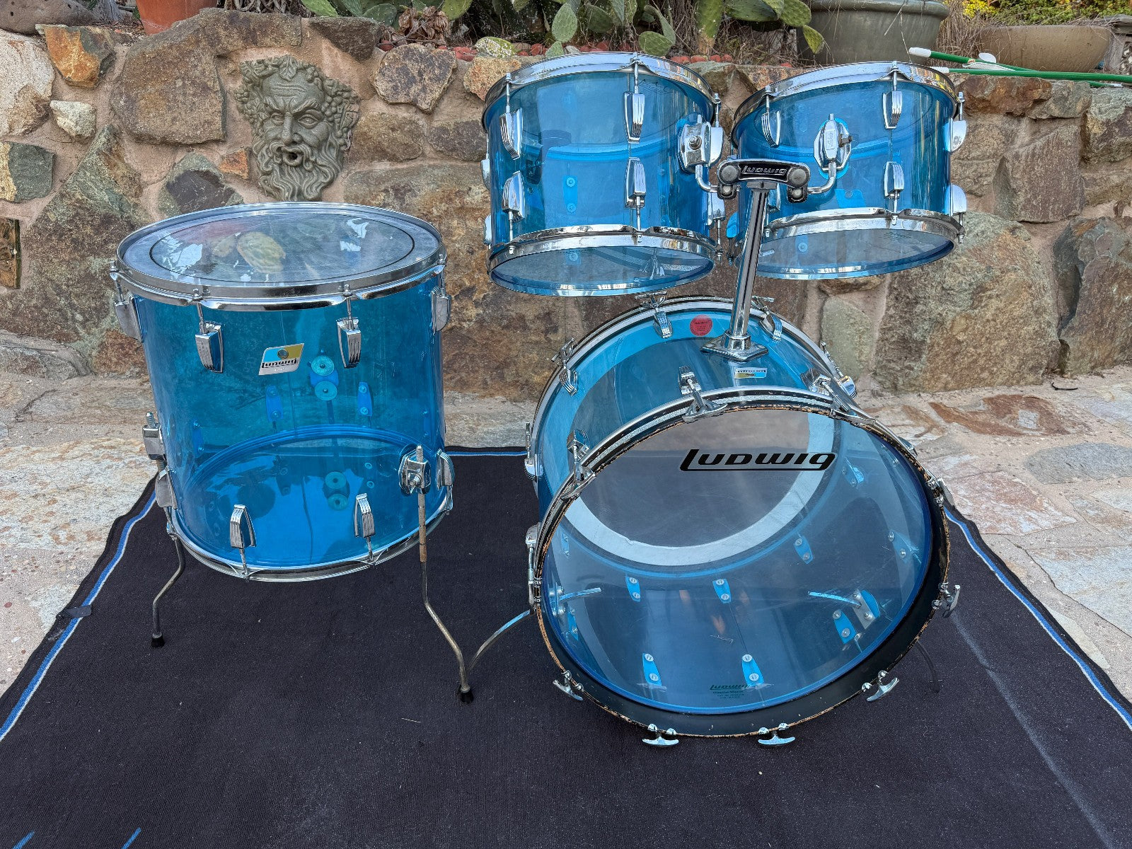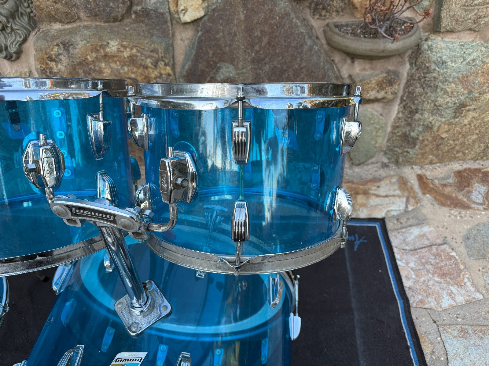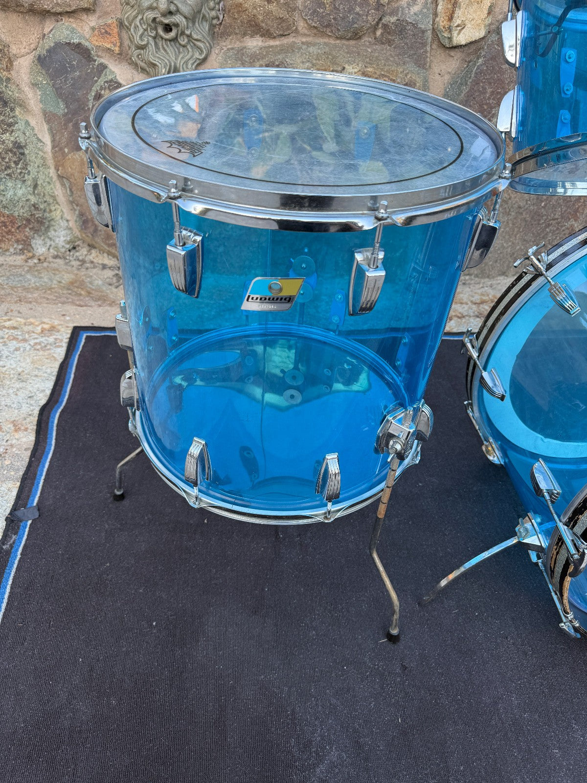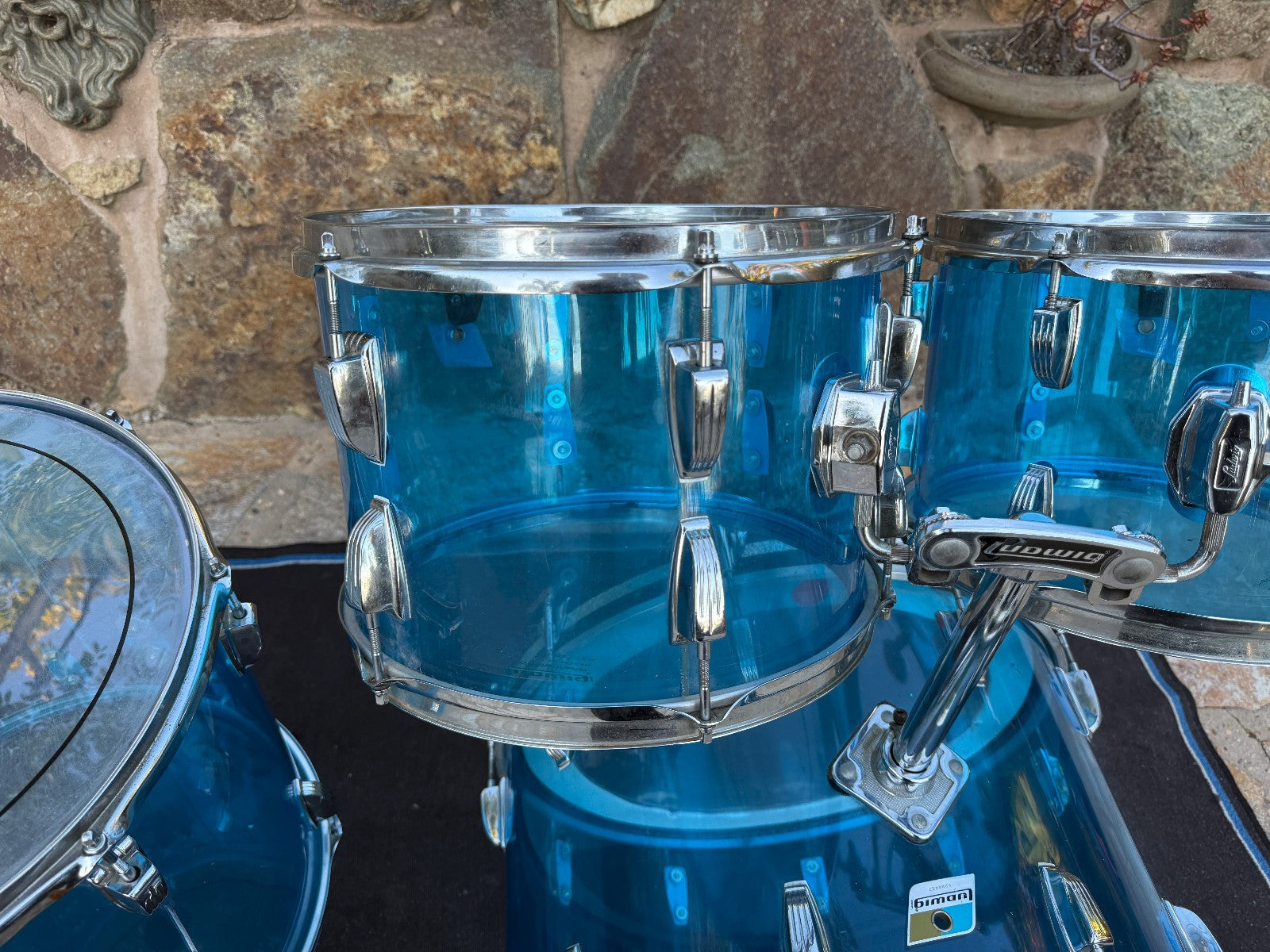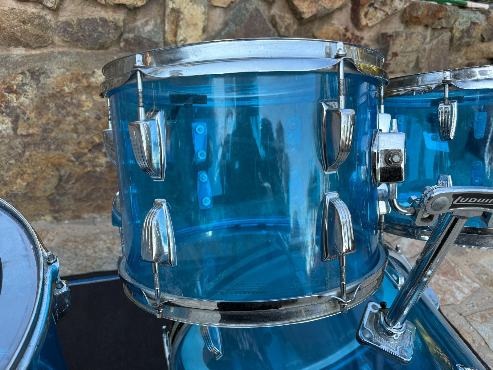 Vintage Ludwig Vistalite Blue 4pc Drum Set Kit 22/12/13/16 70's