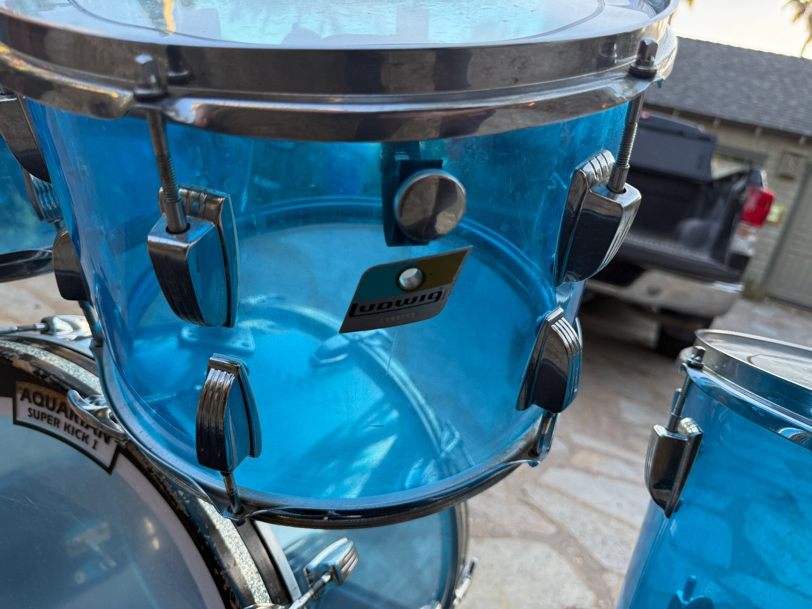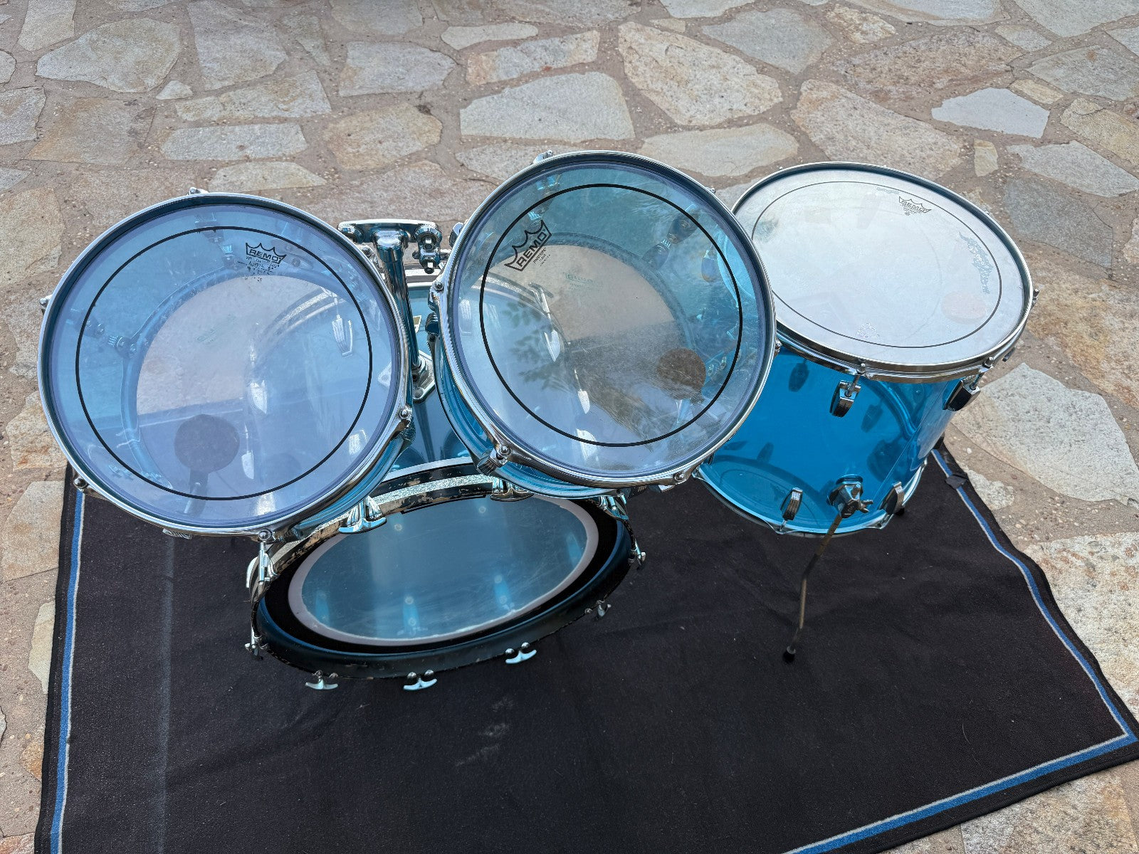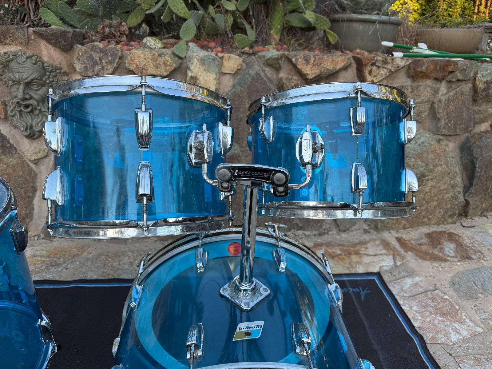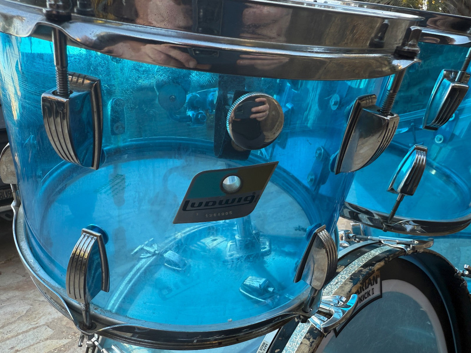 Vintage Ludwig Vistalite Blue 4pc Drum Set Kit 22/12/13/16 70's