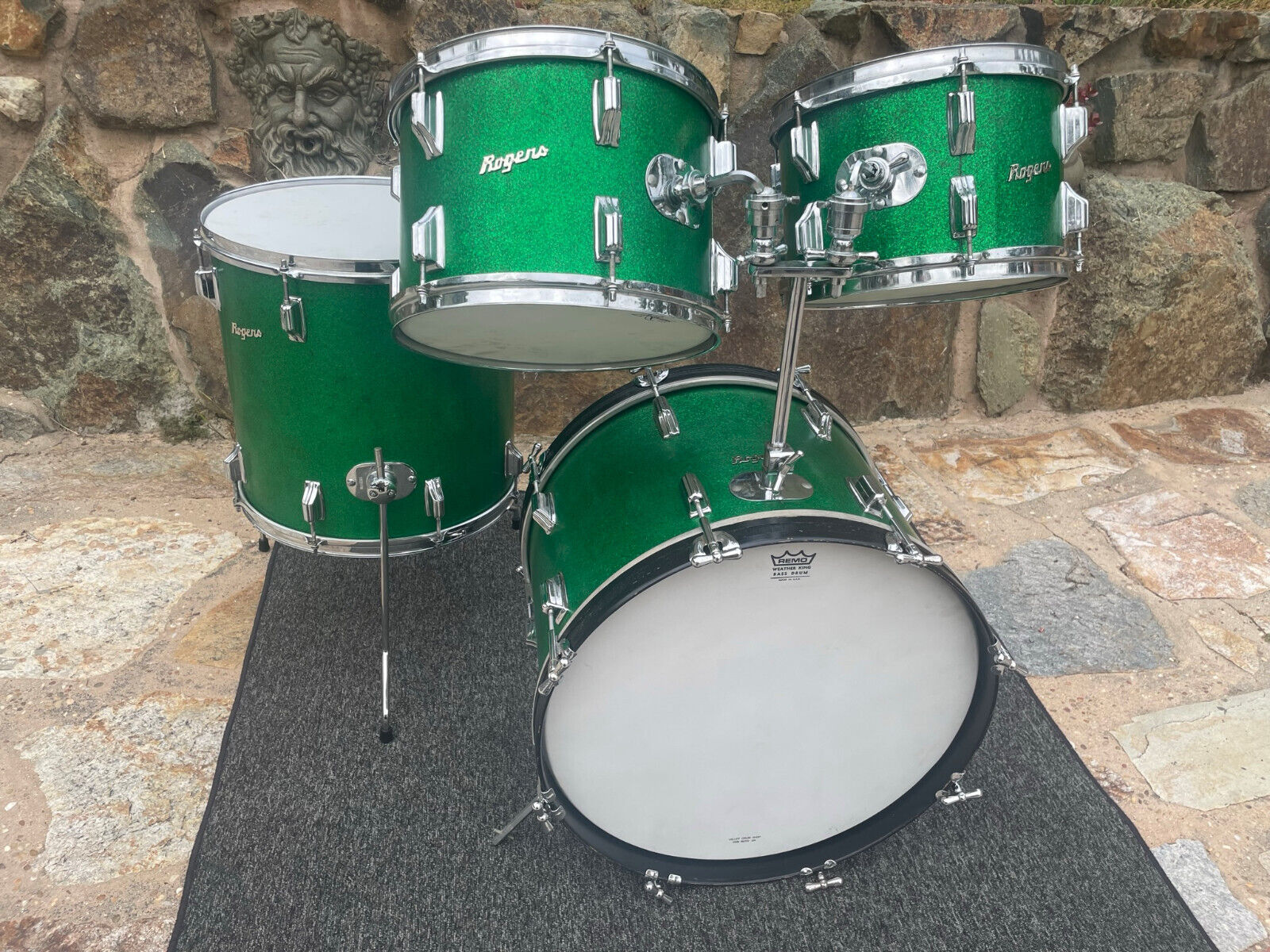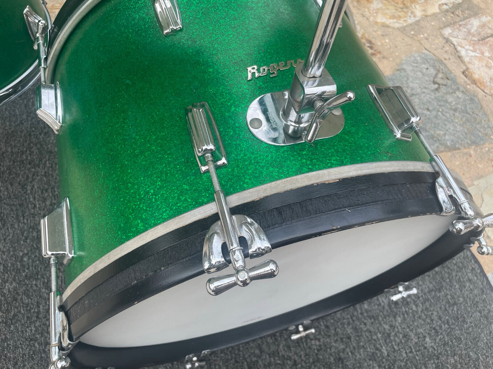 Vintage Rogers PowerTone Londoner Fullerton Green Spakle Pearl Power Tone  20 inch kick
