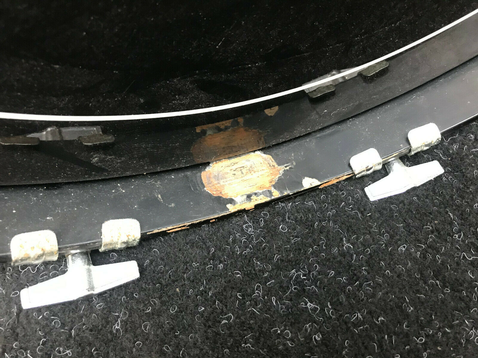 The drums has some minor pitting, some marks a couple small paint ding spots. The front head a small tear