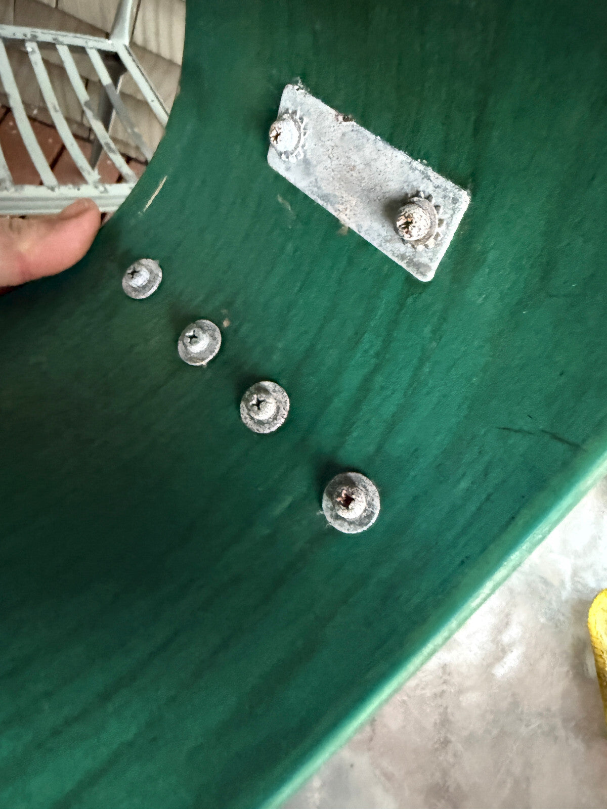 Looks ok but does have some normal wear . The interior does have some oxidation on the bolts. There is some flaking on the chrome on the hoops. The paint has faded off the interior edges in some spots. Normal marks here and there also.