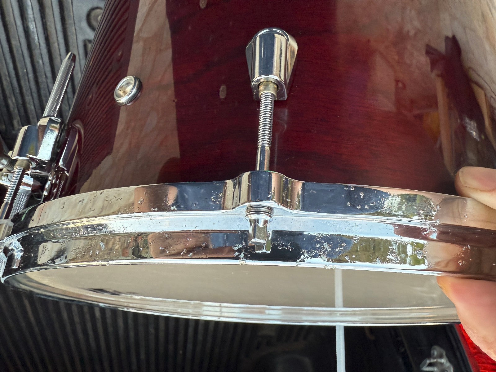 The drum does have oxidation / pitting on the chrome  (see pictures) but overall is a great drum. See all pictures for overall condition.